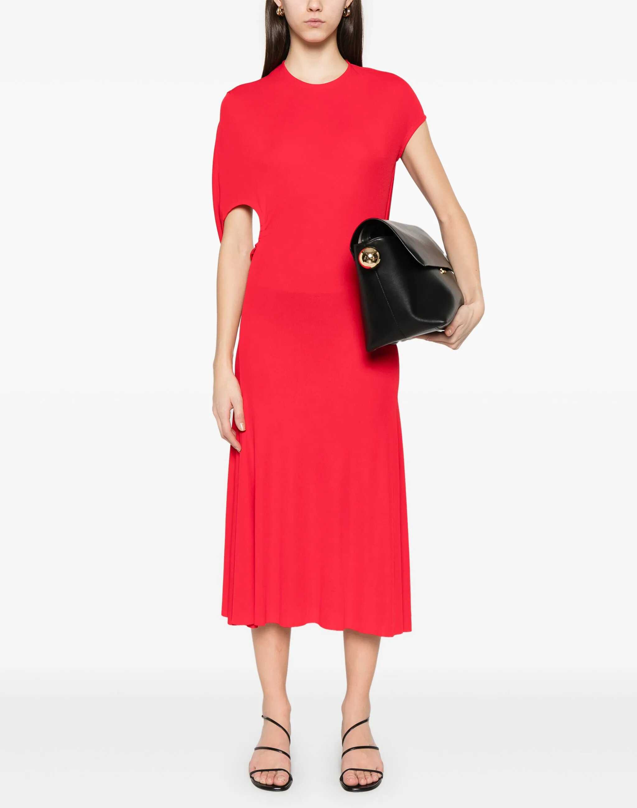 The Salerno midi Dress by Jacquemus combines elegance and originality. The flared midi silhouette creates a fluid shape, while the crew neck keeps the look simple. The cut-out detail on the back adds a subtle touch of sensuality, while the asymmetric short sleeves bring a modern twist. Perfect for those seeking a sophisticated dress with a creative touch, ideal for special occasions.