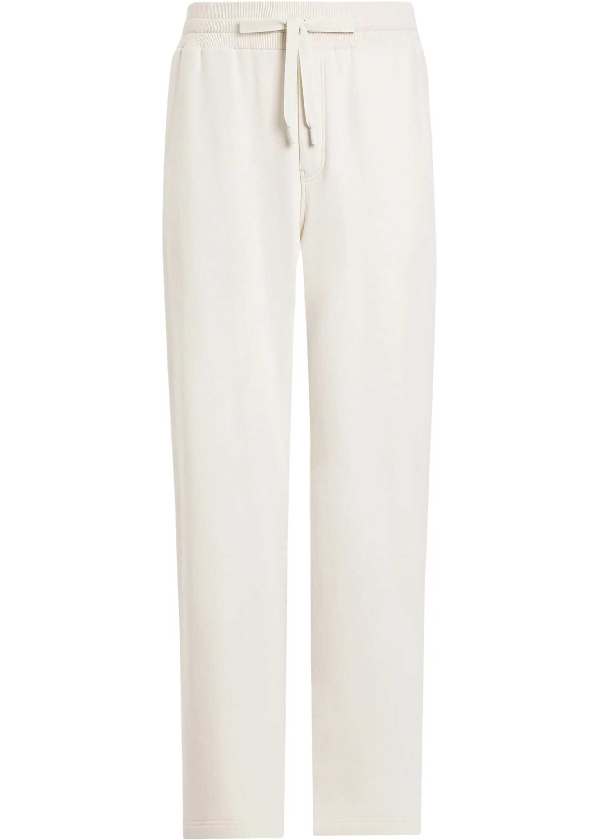 Jogging trousers in stretch cream jersey. They feature an elasticized waistband with a drawstring, two side pockets, one back zip pocket with an embroidered DG logo, and a straight leg.