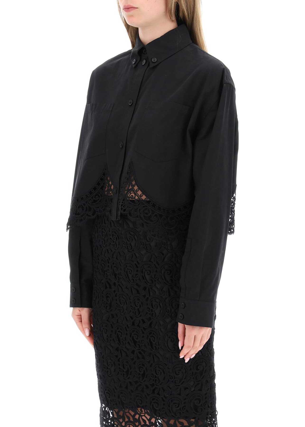 Cropped Shirt With Macrame Lace Insert