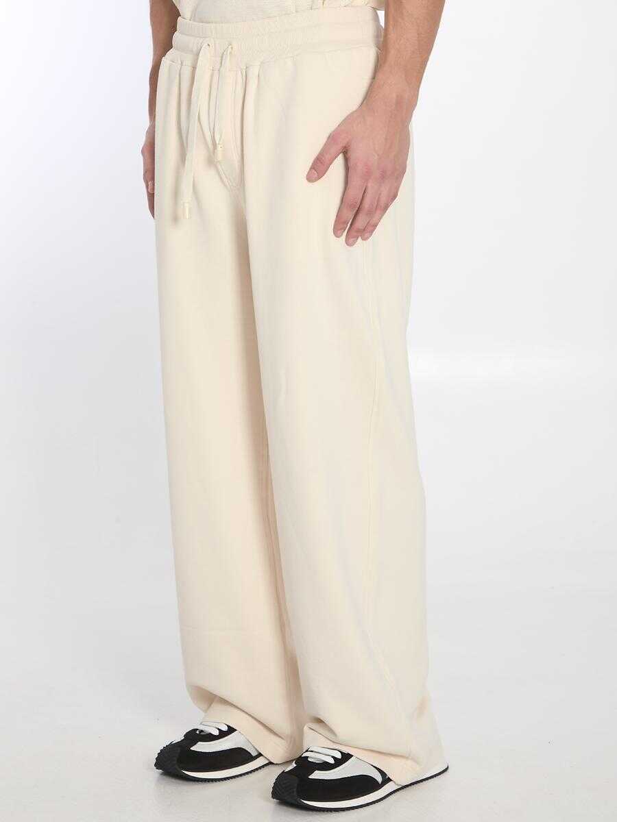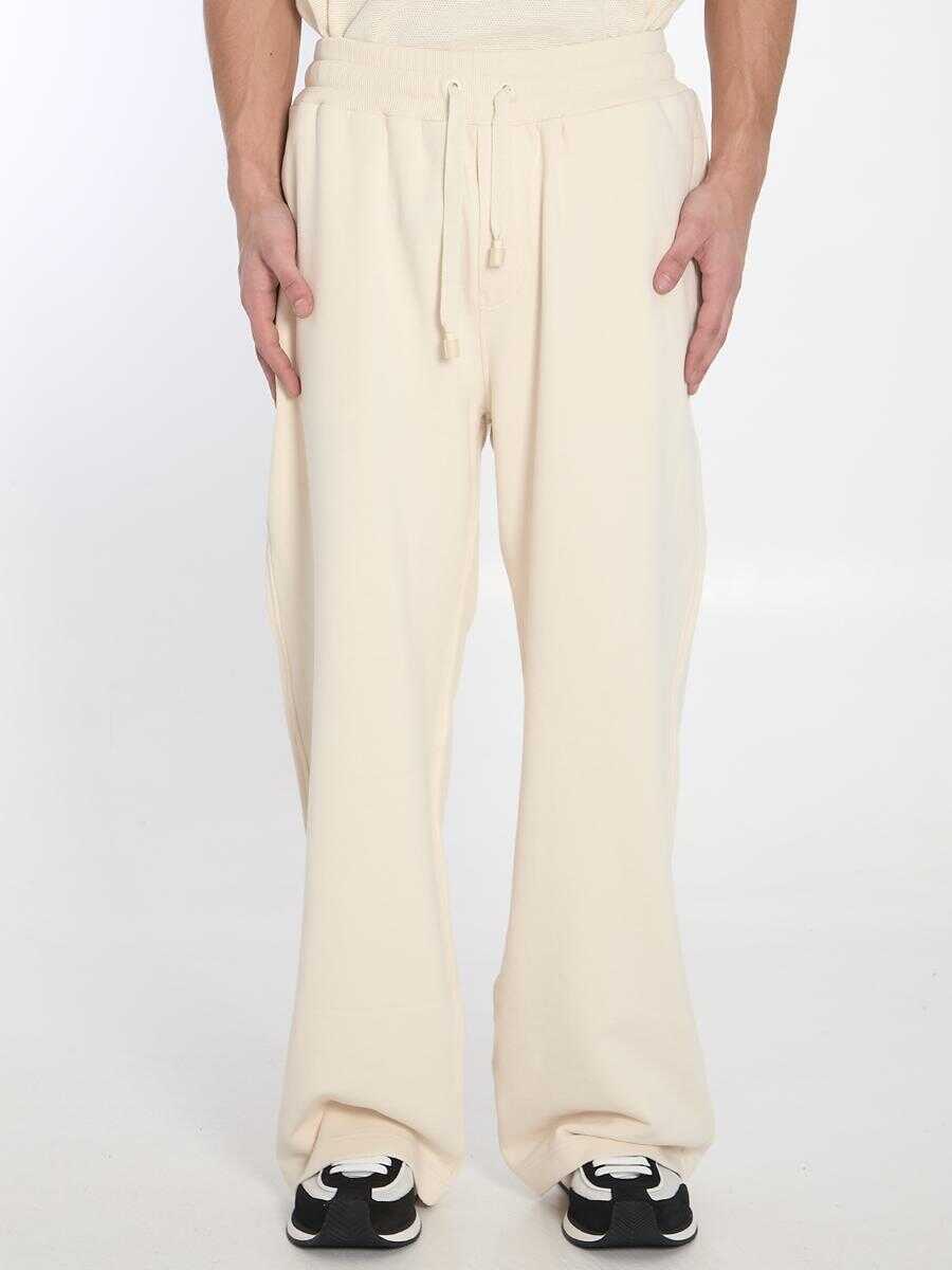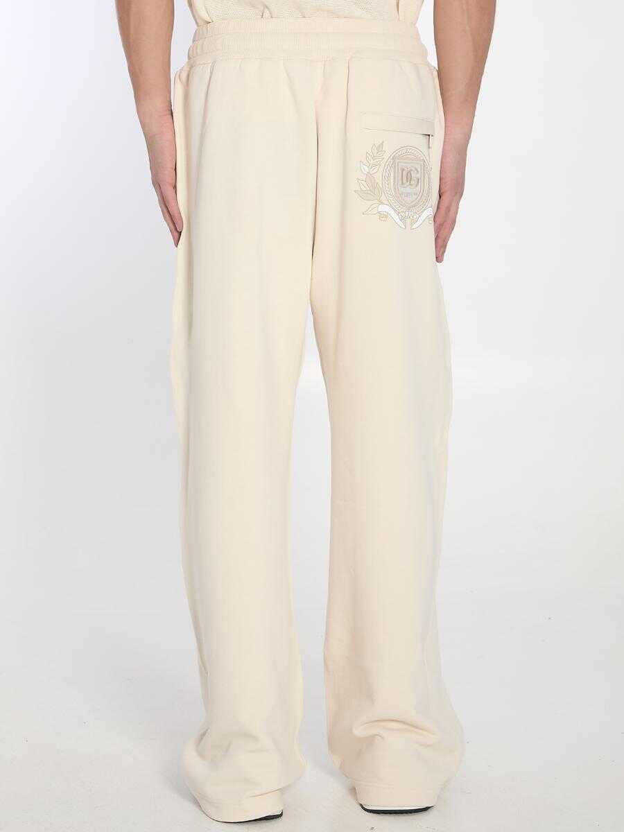 Jogging trousers in stretch cream jersey. They feature an elasticized waistband with a drawstring, two side pockets, one back zip pocket with an embroidered DG logo, and a straight leg.