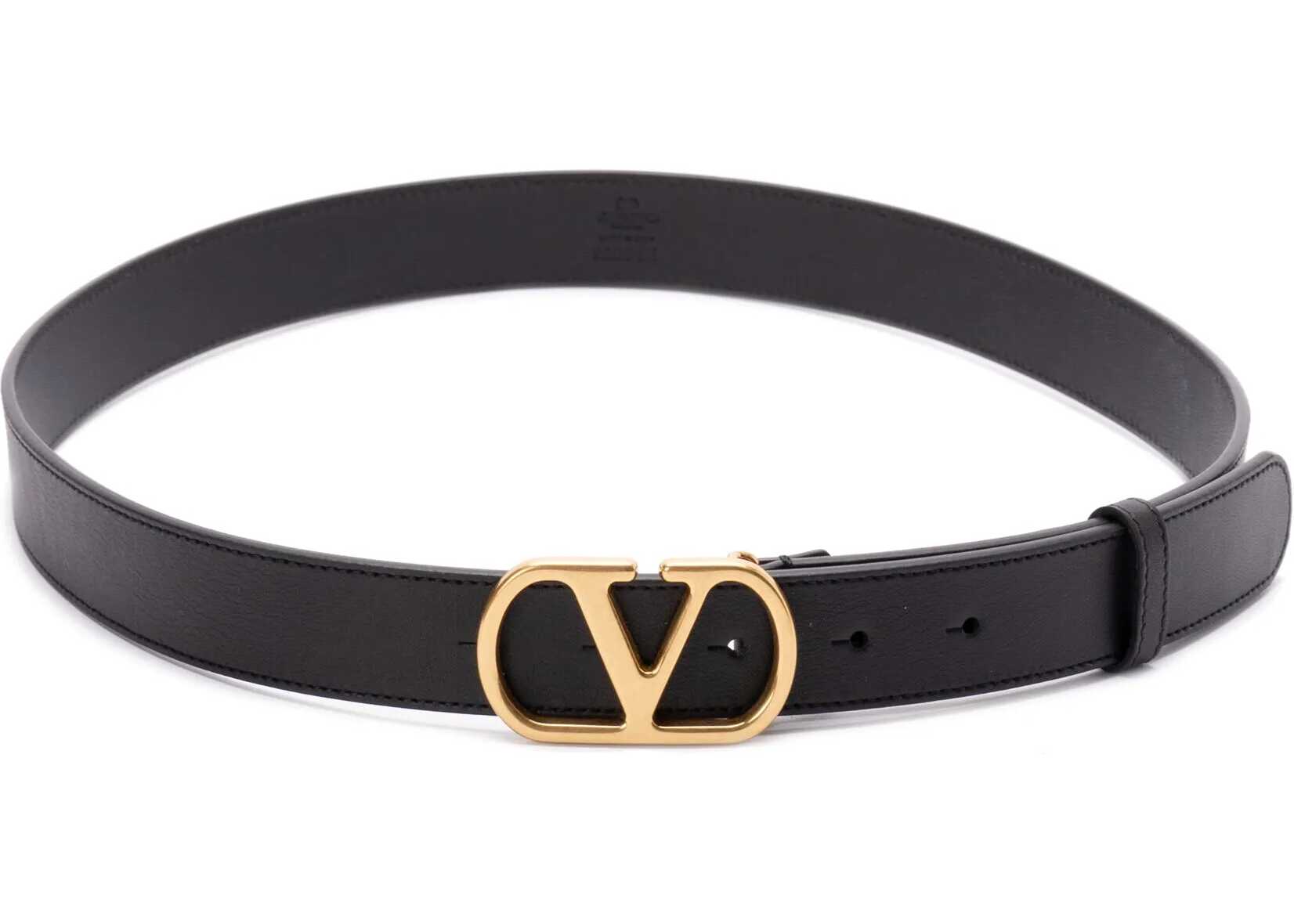 Black leather belt with adjustable gold-tone metal VLogo buckle. Dust bag included. Any leather imperfections are not to be considered manufacturing defects, but a peculiarity of the material.