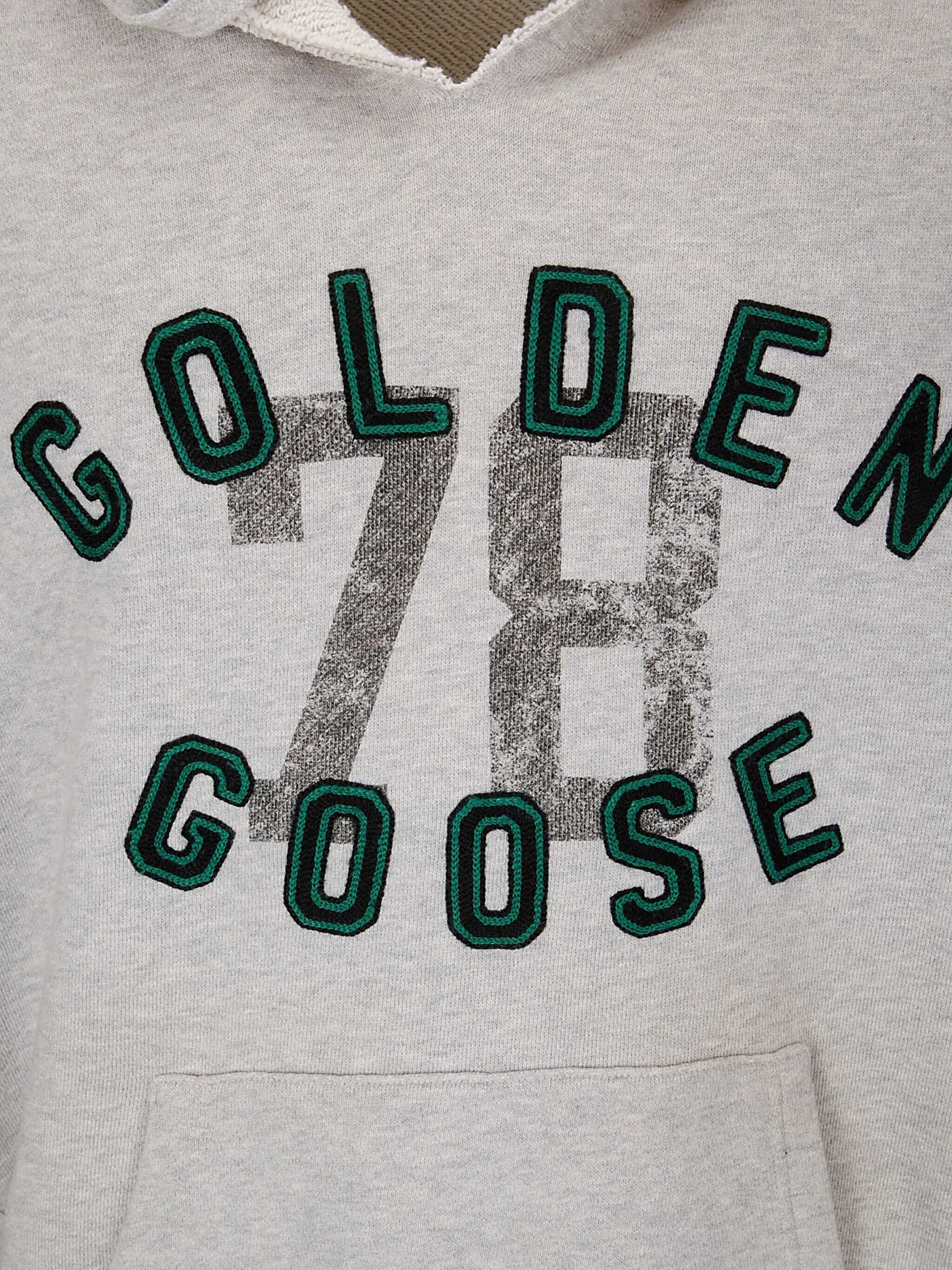 The Golden Goose Logo Hoodie is a perfect mix of comfort and style. The adjustable drawstring hood allows for easy adjustment, while the raw cut V-neck adds a touch of originality and modernity. The ribbed hem and cuffs ensure a comfortable and defined fit. The iconic contrasting logo stitched on the front adds a distinctive and recognizable detail of the brand. A casual yet sophisticated garment, ideal for an urban and contemporary look.