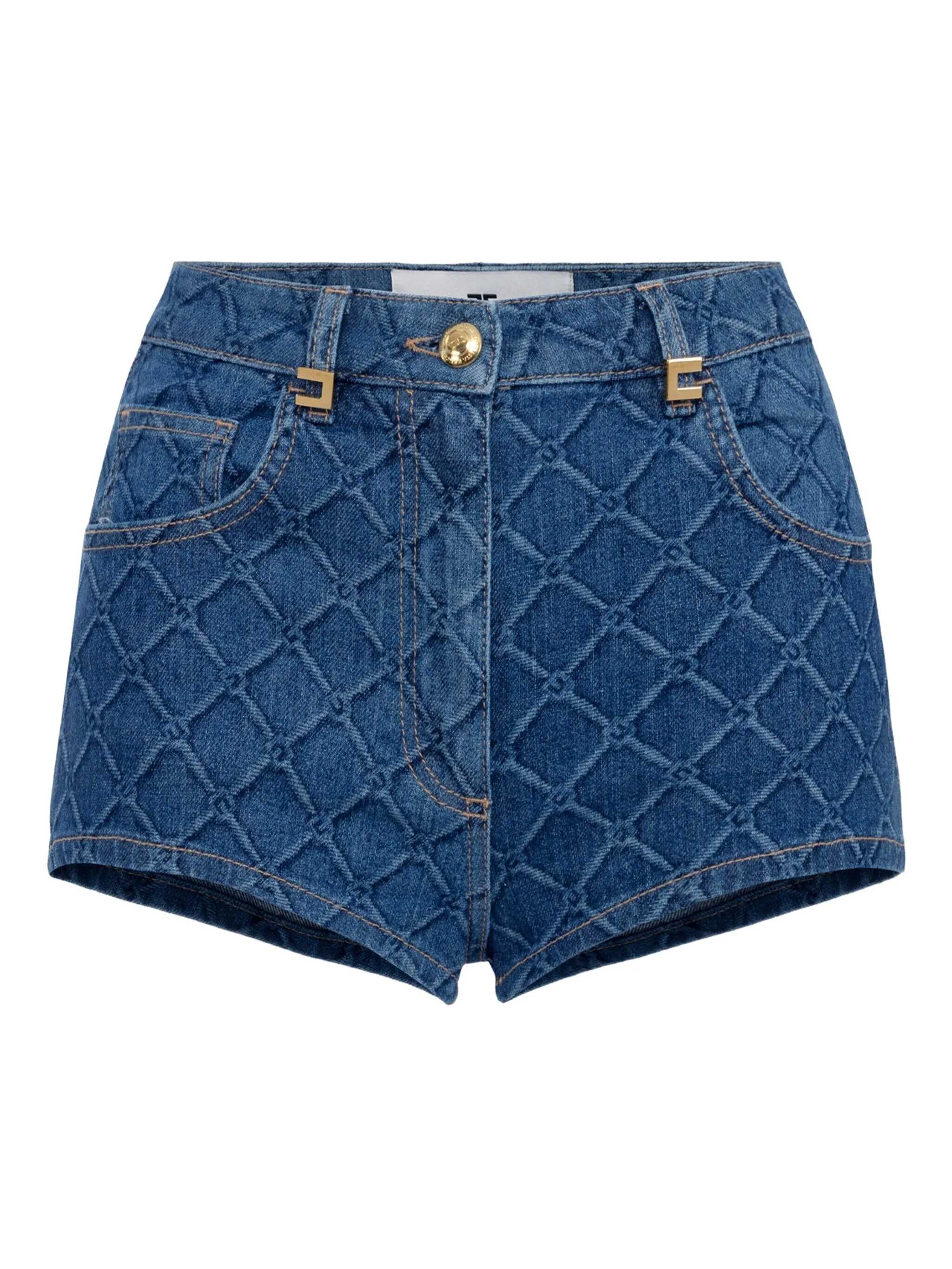 Short Blue Jeans model by Elisabetta Franchi, in cotton denim with a slight percentage of elastane for greater comfort. Clean lines and slightly flared cut make this garment the must-have of summer, to be combined with silk tops or basic t-shirts for casual-chic looks.