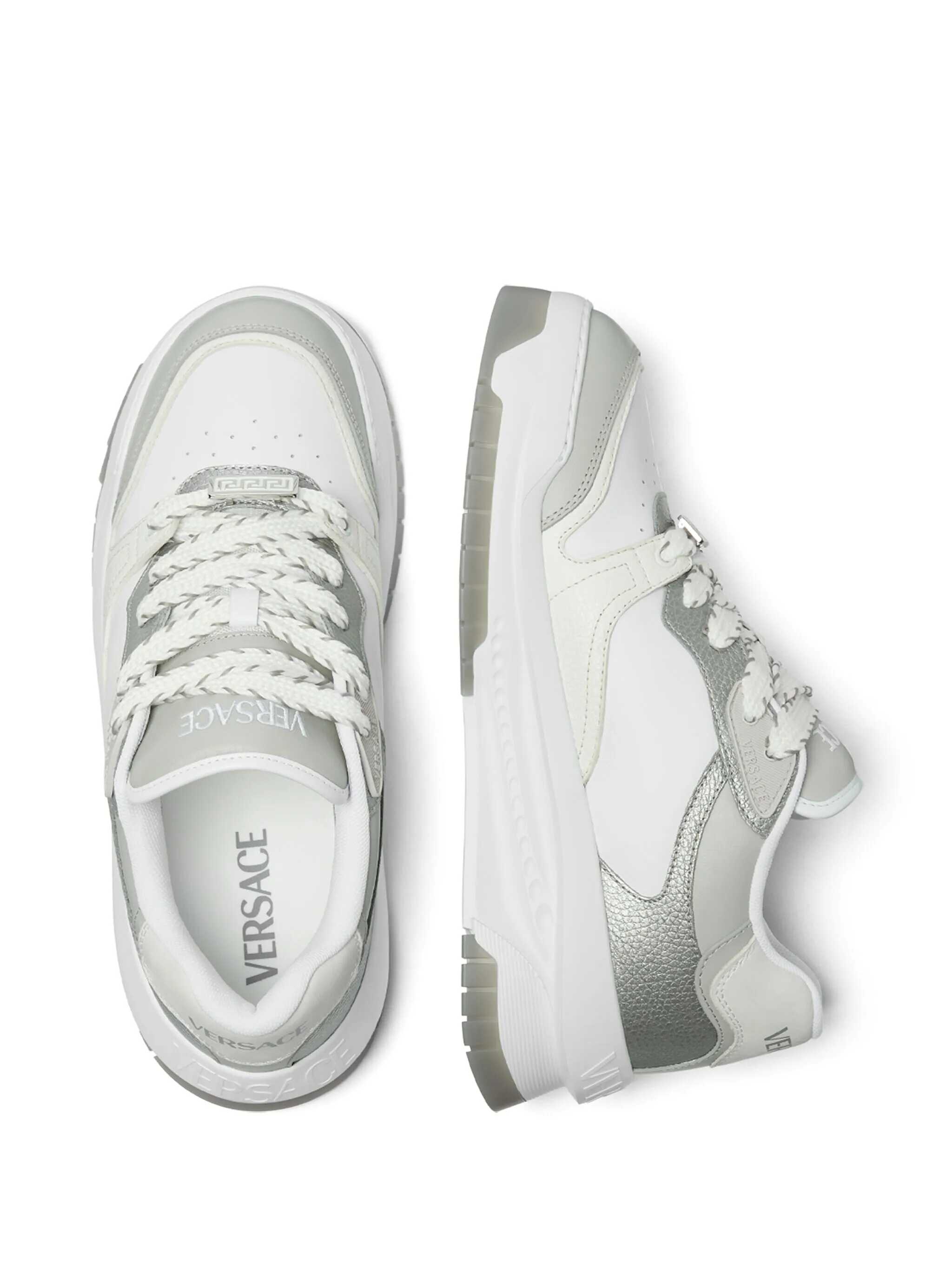 'Odissea' sneakers in smooth and grainy leather with contrasting details, Greek metal on the front, lace-up closure, logo embroidery on the tongue, rubber sole