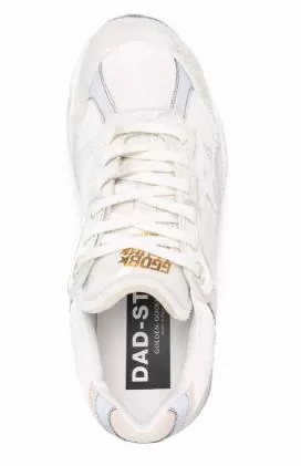white leather panelled design front lace-up fastening flat rubber sole logo patch at the tongue