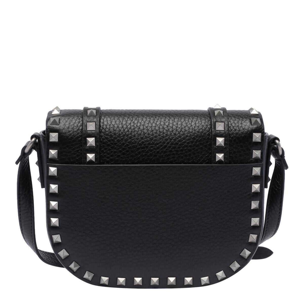 Valentino Garavani Black Small Rockstud Crossbody Bag, Magnetic Closure, 2 Inner Slots, Zipped Pocket, External Open Pocket, Adaptable Strap, Rockstuds Allover, 17x20x6 cm