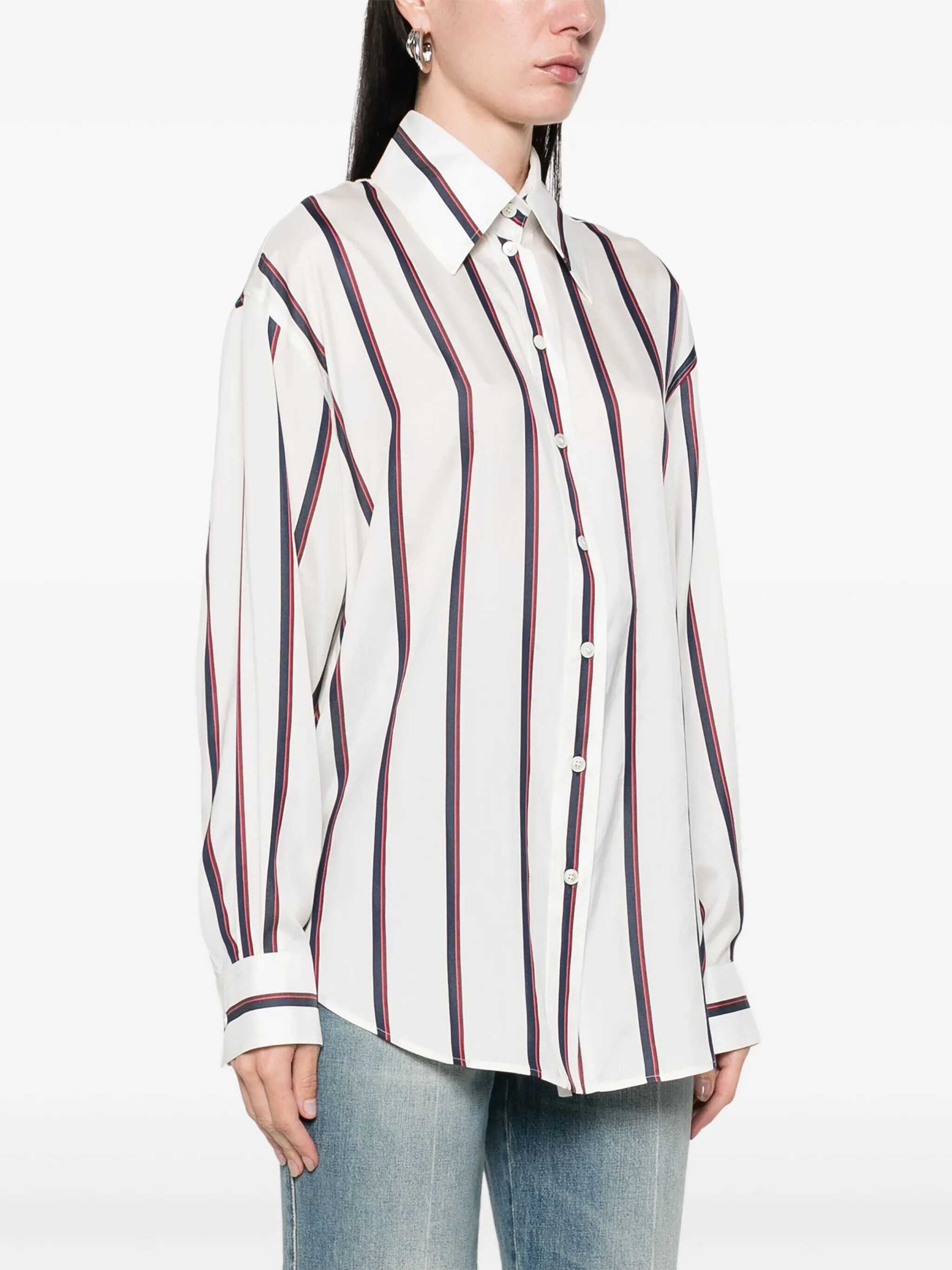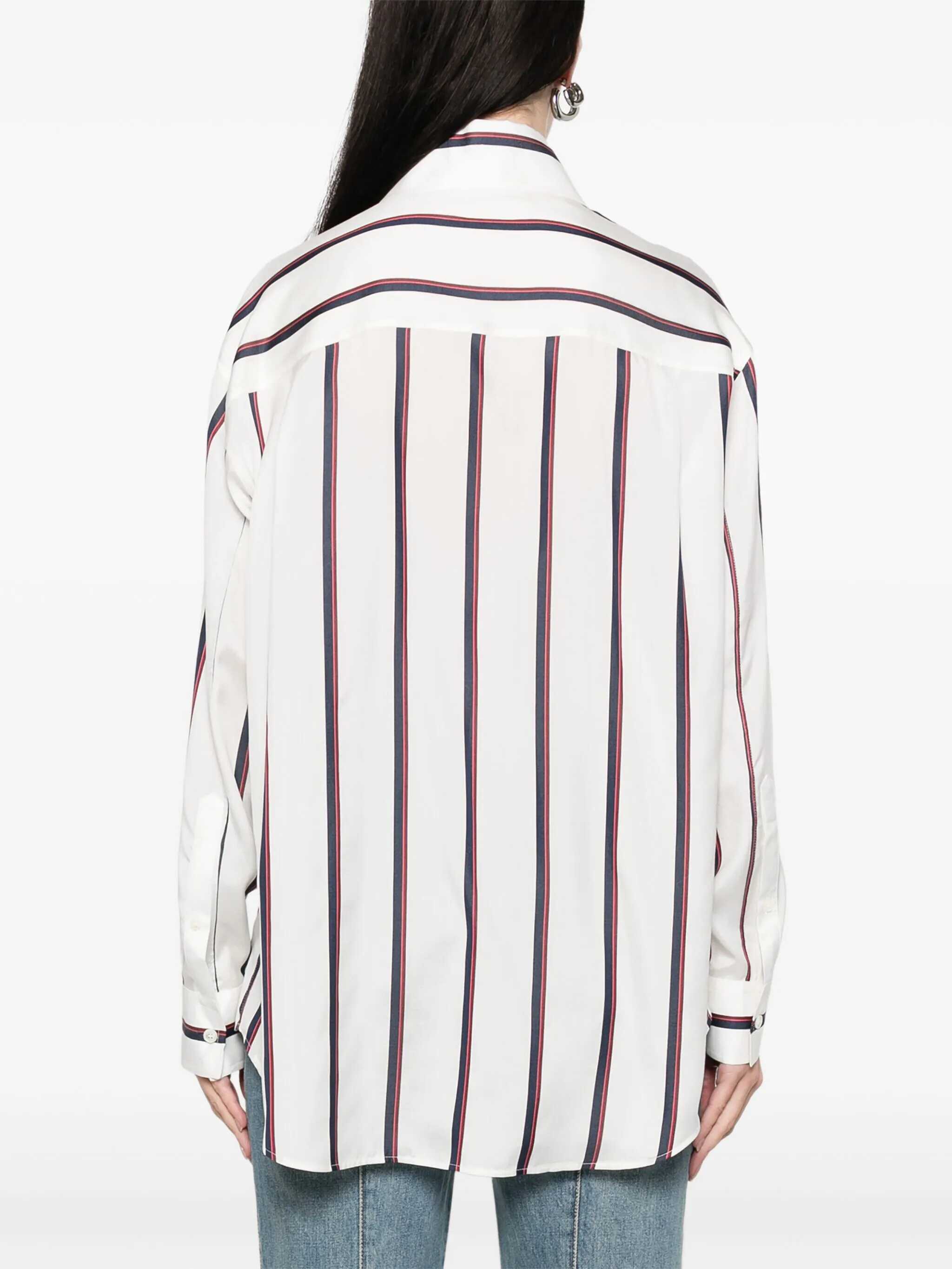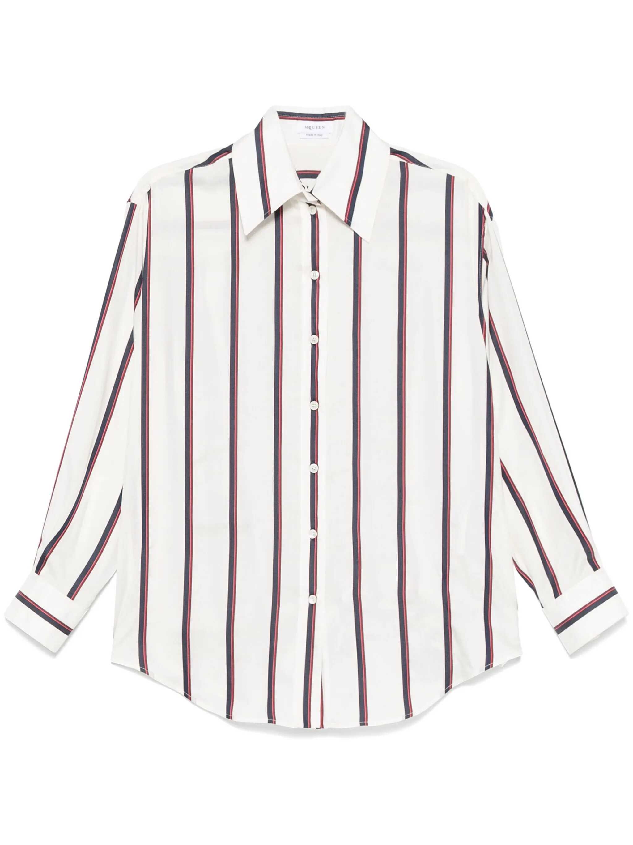 - Alexander McQueen - Flared shirt - White - Blue and brown striped print - Front button closure - Women