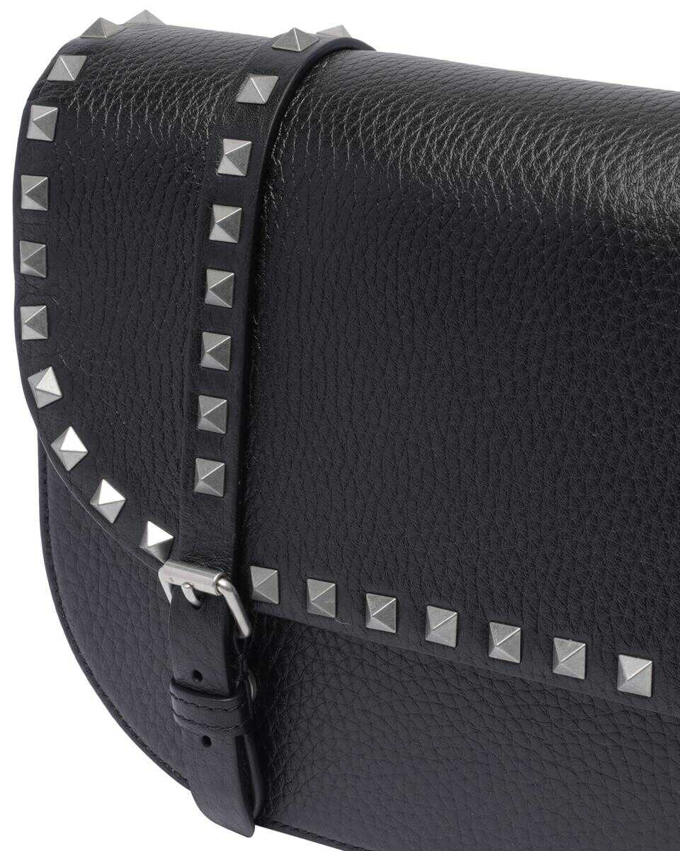 Valentino Garavani Black Large Rockstud Messenger Bag, Magnetic Closure, 2 Inner Slots, Adaptable Strap, Studs Detail, Leather Model, 18x29x8 cm
