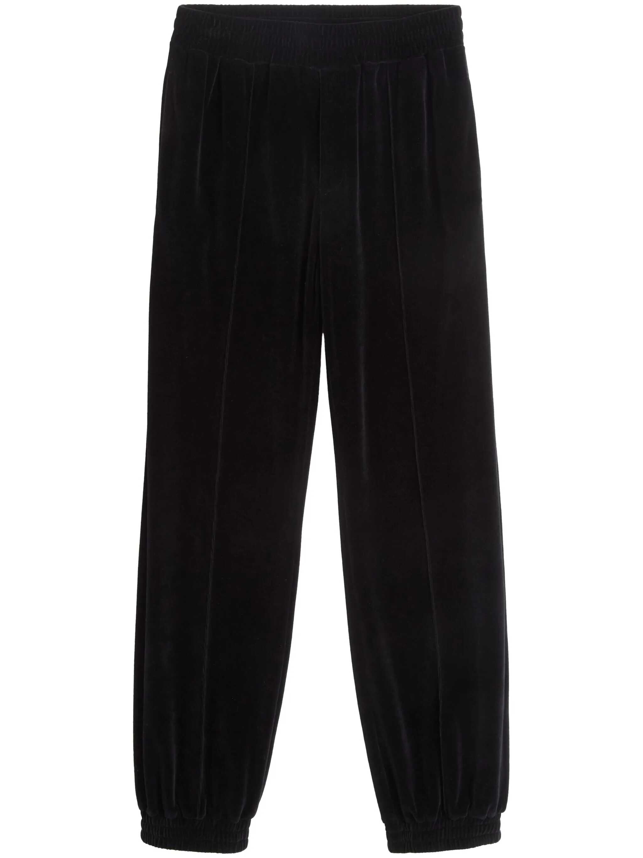 Valentino Black Velvet Pants, Elasticized On Waist, Lateral Pockets, Elasticized Cuffs At Bottom, Patch Logo On The Back, US SIZE
