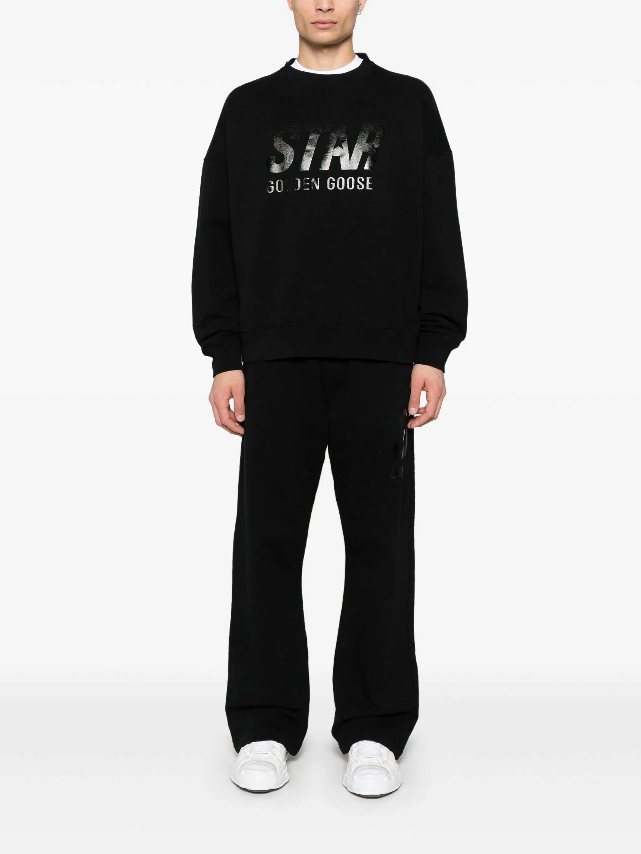 Black/silver cotton logo print sweatshirt from Golden Goose