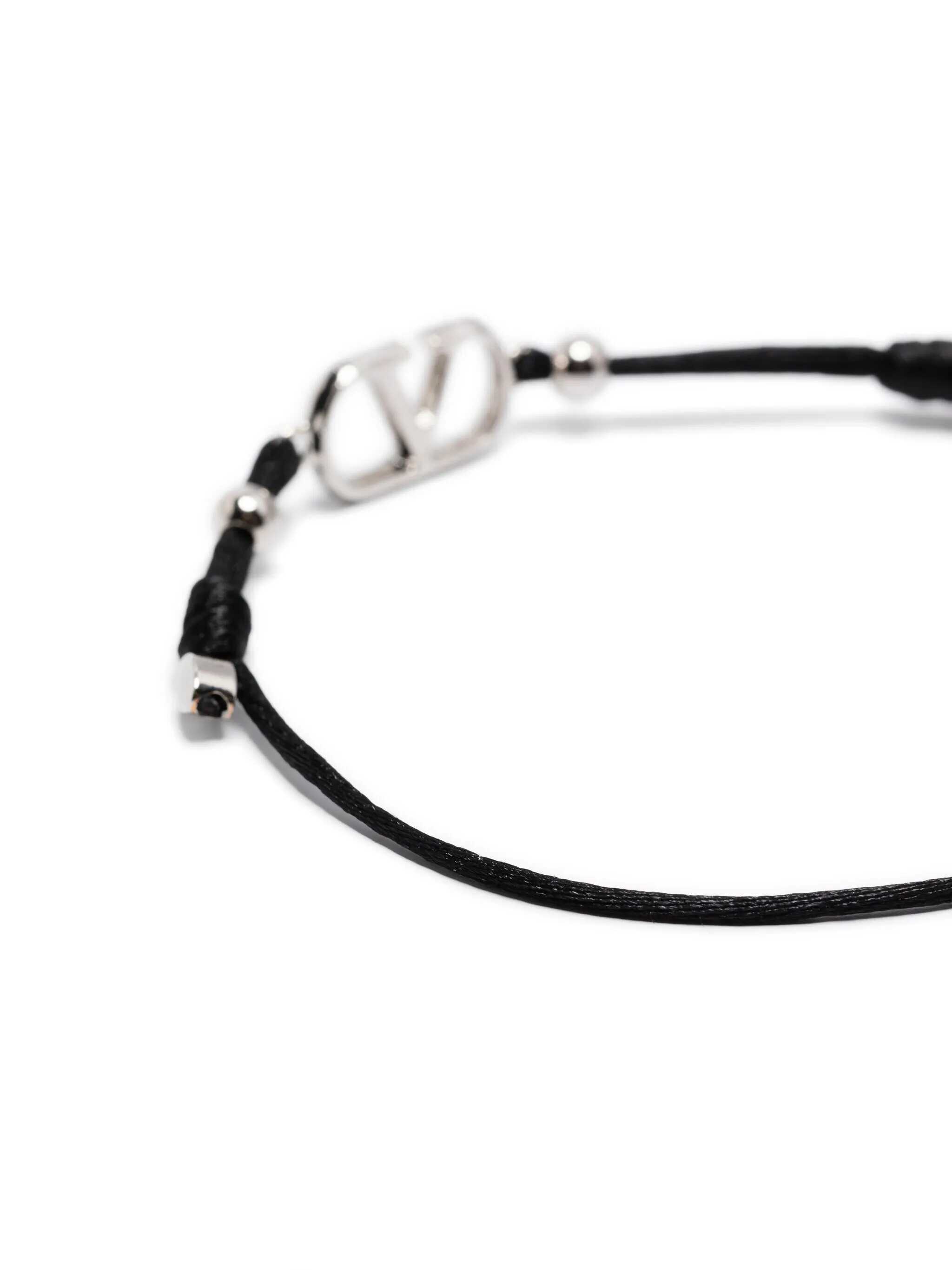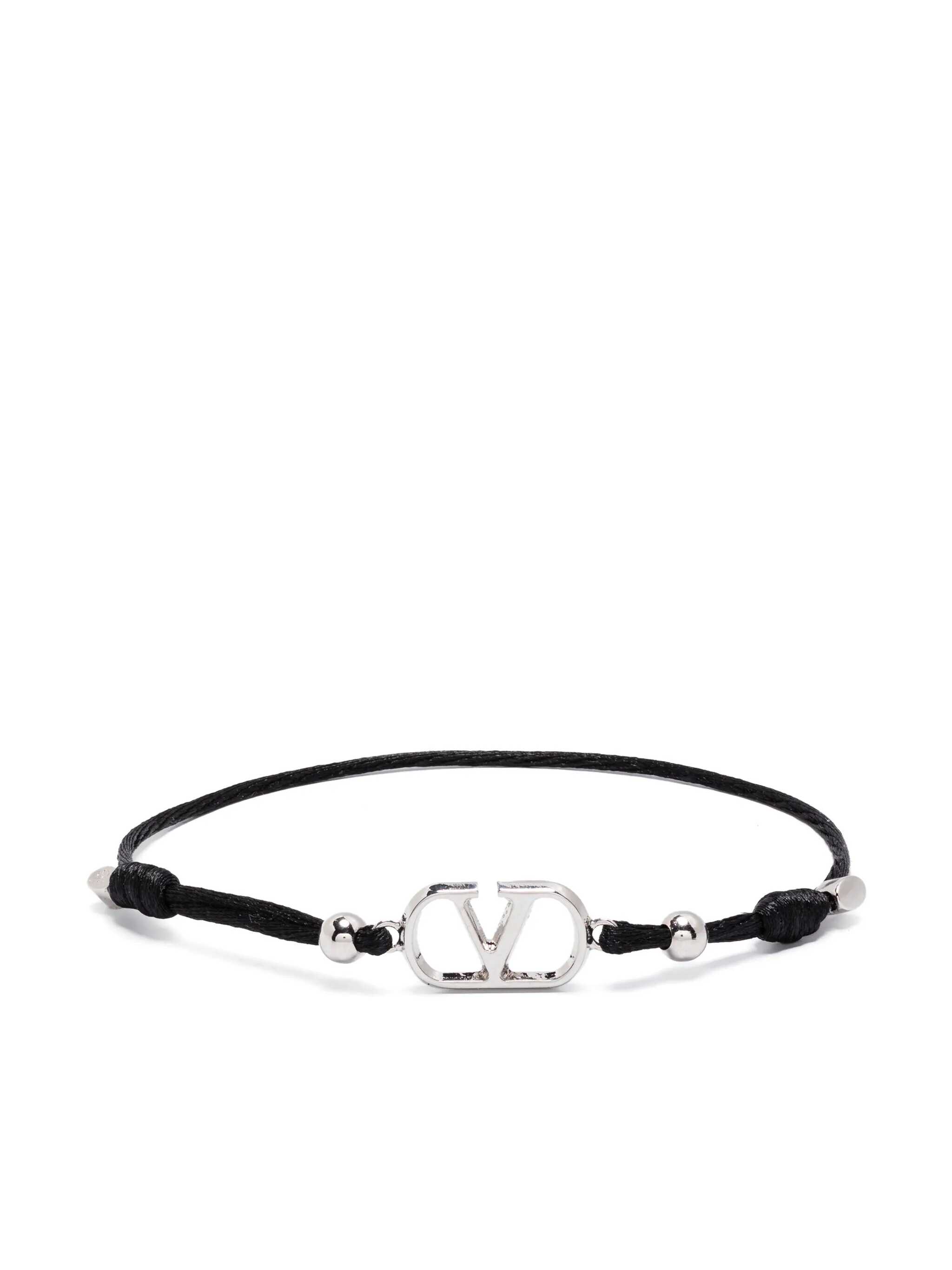 Valentino Garavani Black Vlogo Signature Bracelet, Adaptable Model, Frontal Golden Logo, UNI SIZE