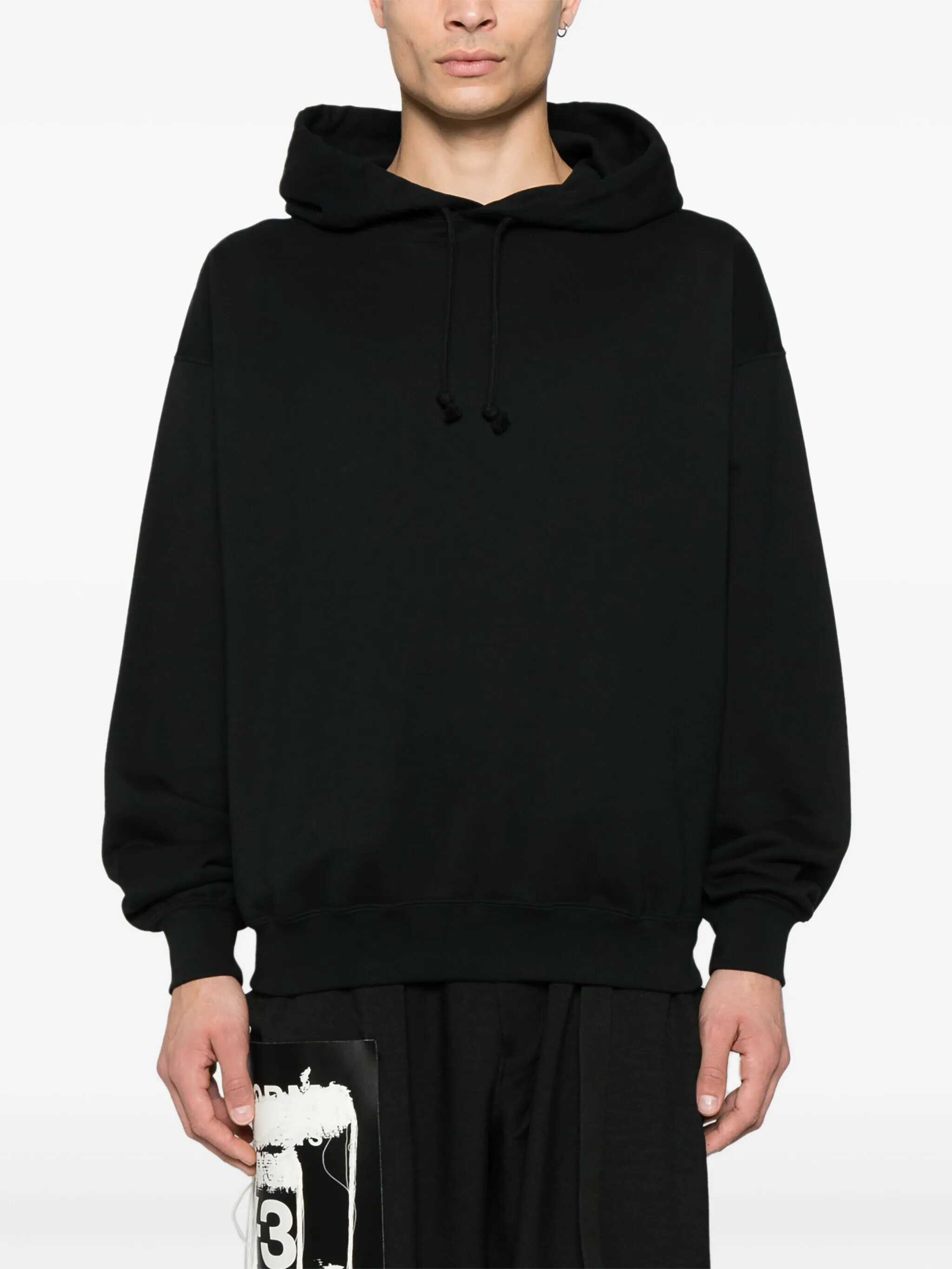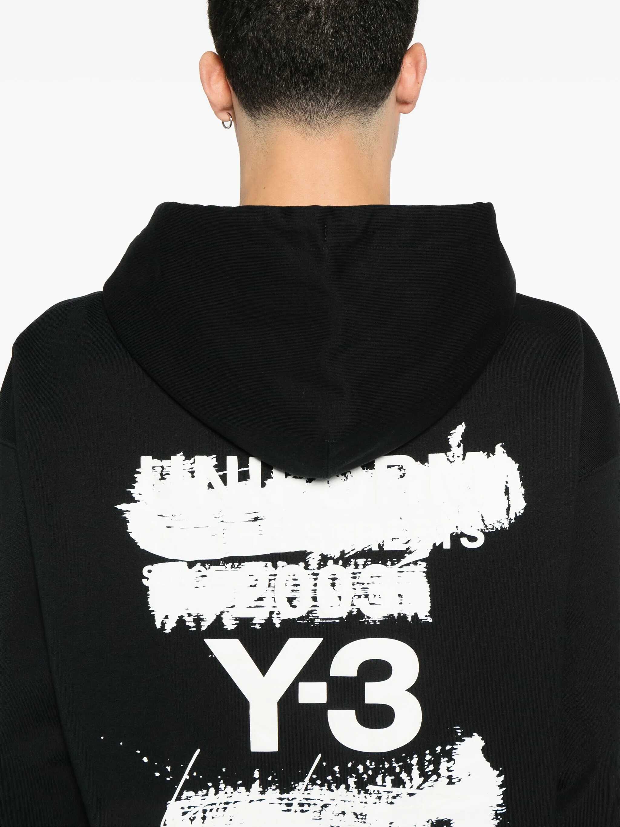 Black cotton hoodie by Y-3 by Adidas, unisex, for men, with graphic print on the back