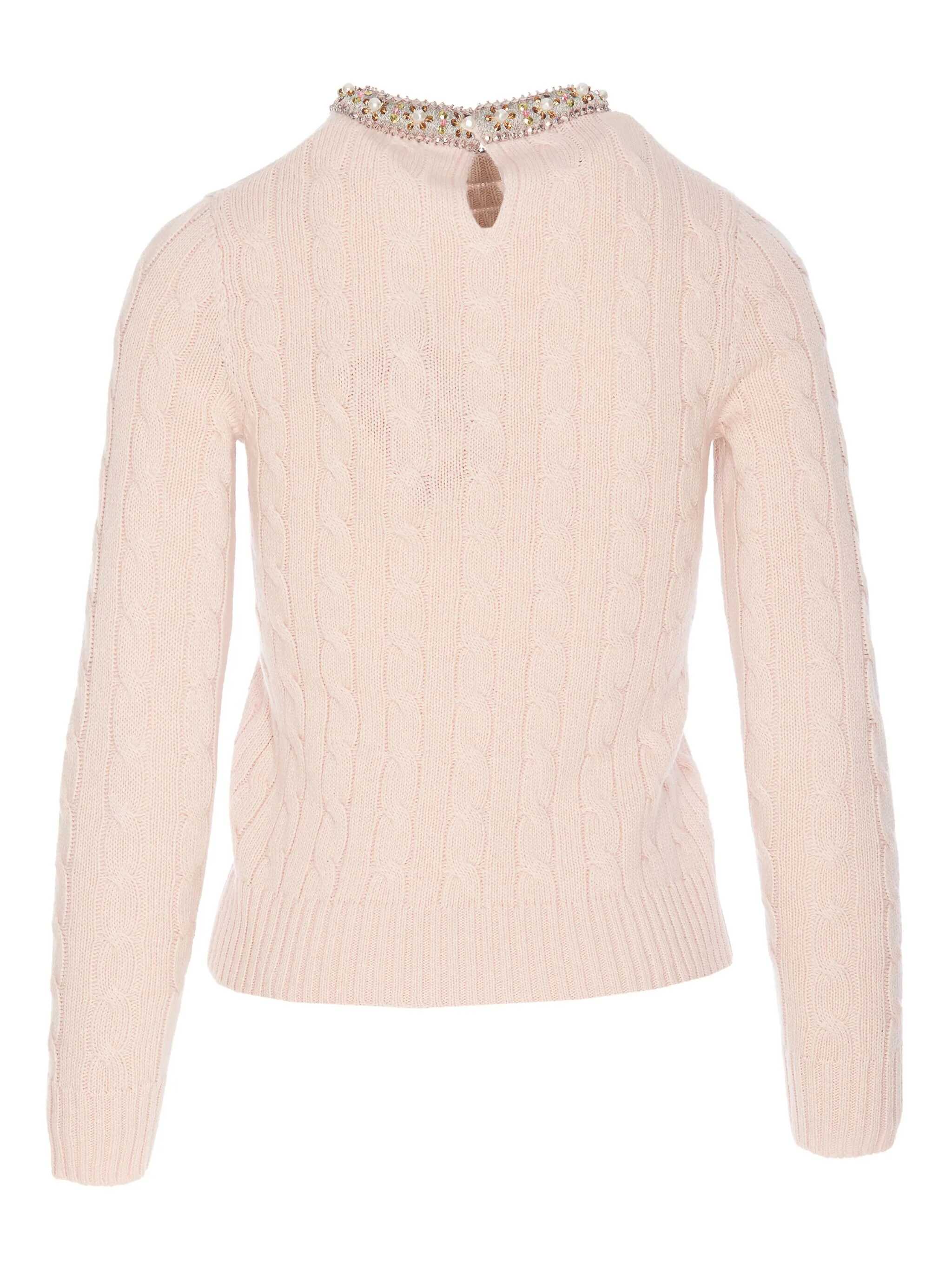 Valentino Garavani Pink Embroidered Sweater, Crewneck, Application Jewels And Sequins Details On Collar, Long Sleeves, Button On The Back, US SIZE