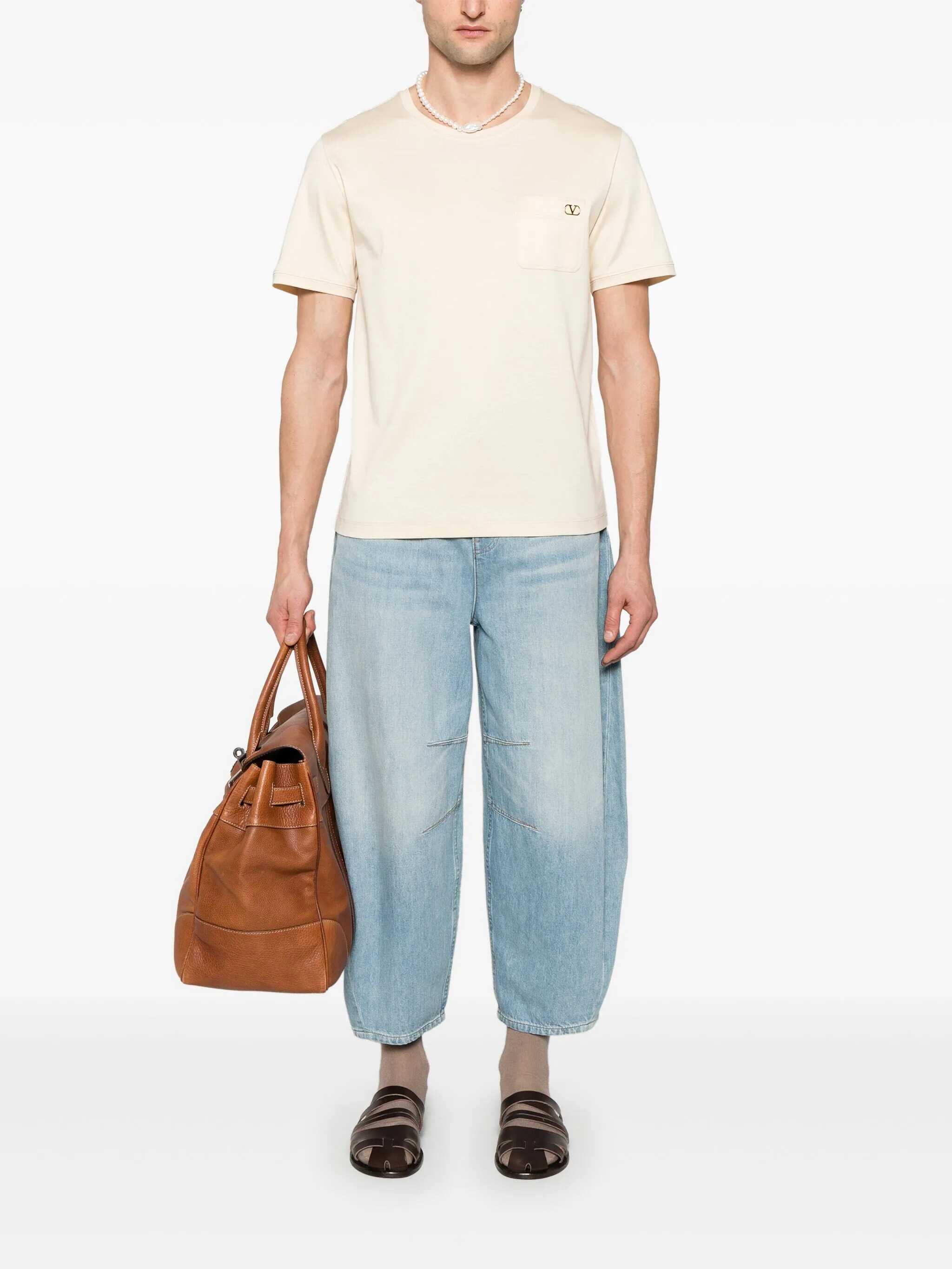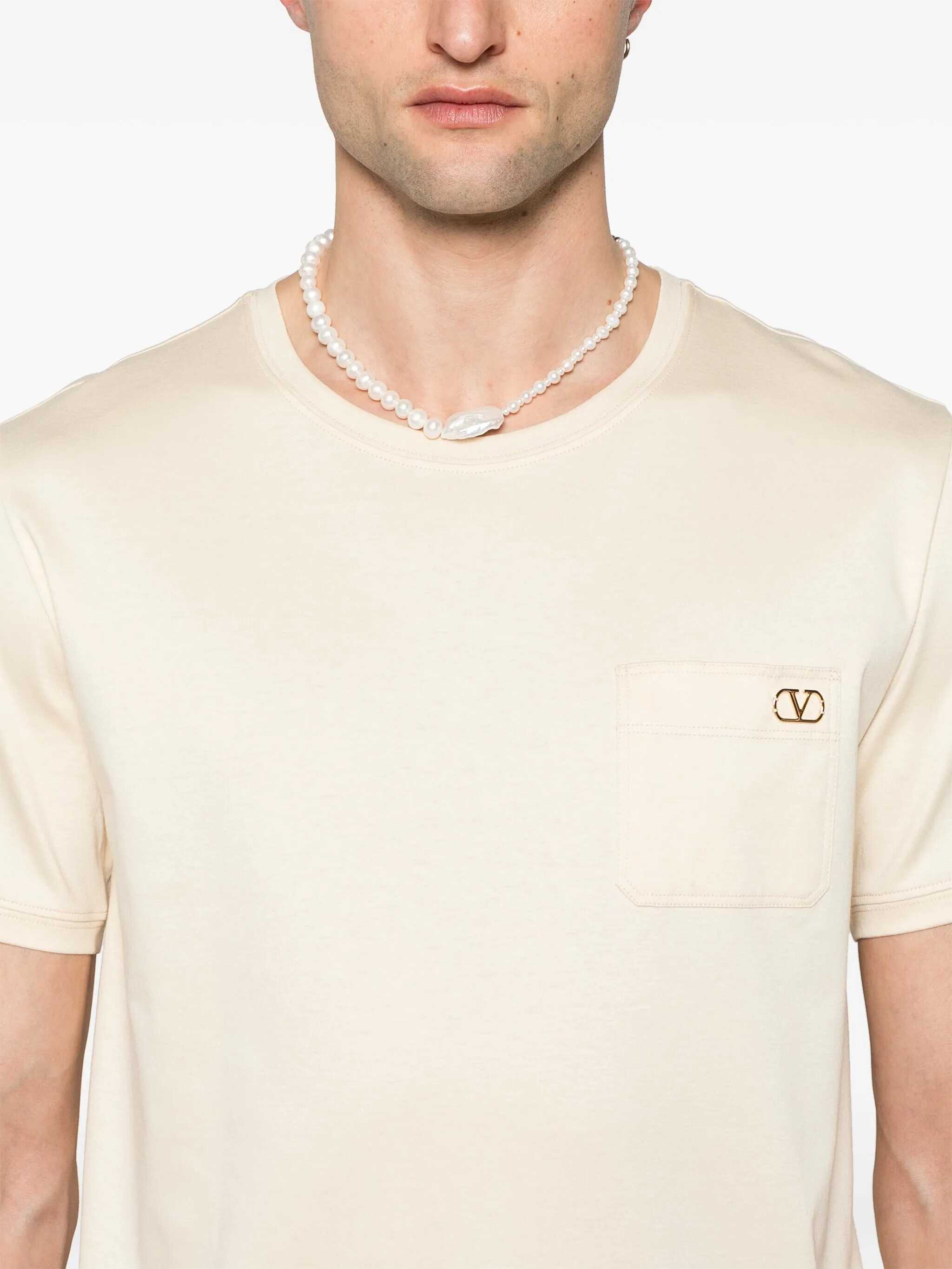 Valentino Garavani Butter T-Shirt, Crewneck, Pocket On The Front With Plaque Logo, US SIZE