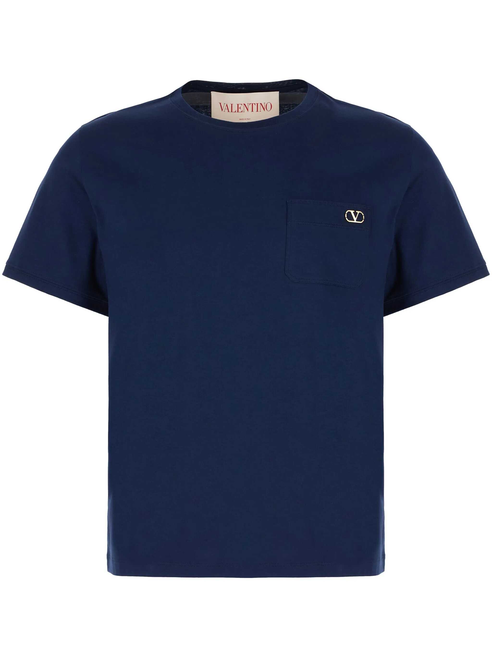 Valentino Garavani Blue T-Shirt, Crewneck, Pocket On The Front With Plaque Logo, US SIZE