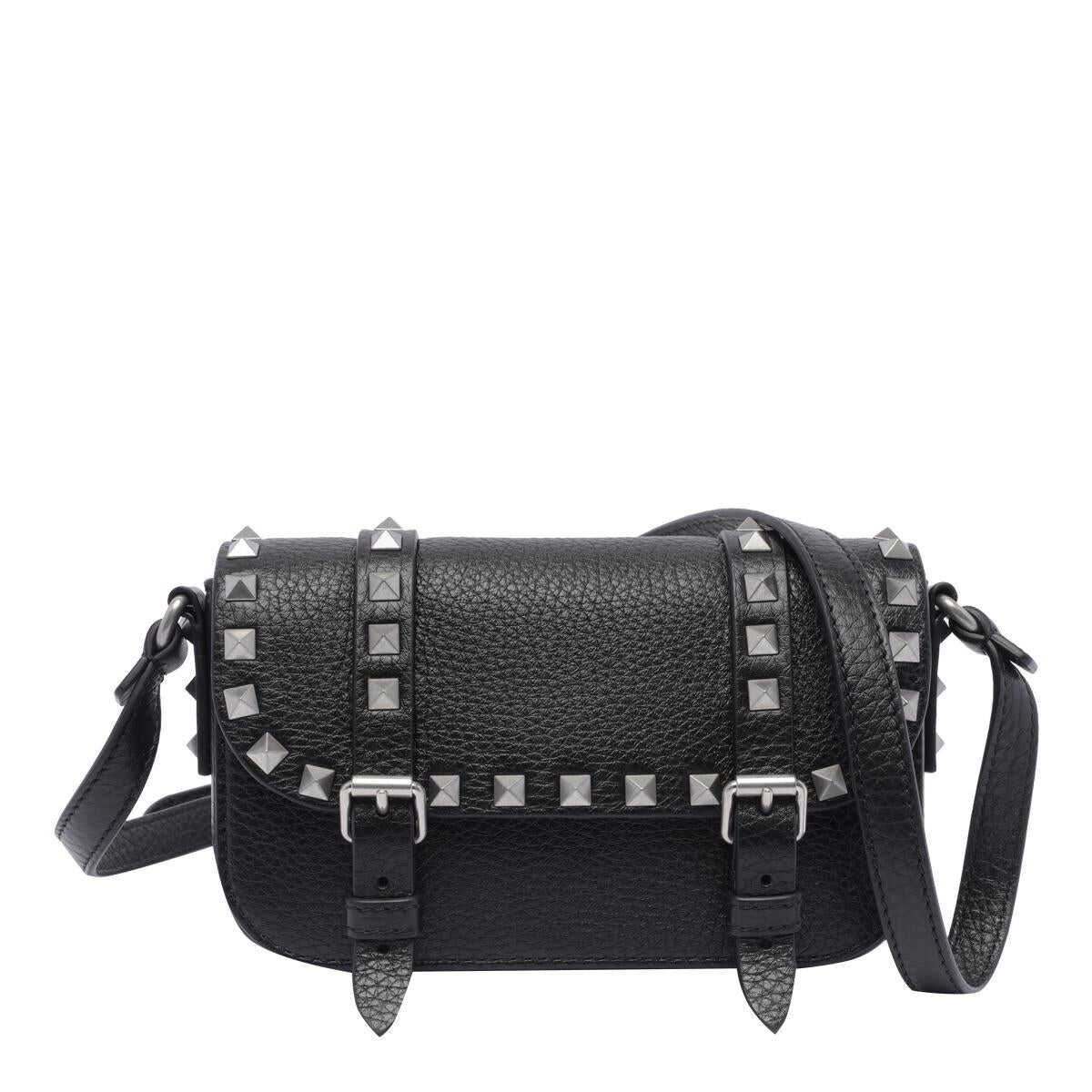 Valentino Garavani Black Mini Rockstud Bag, Magnetic Closure, Inner Slot, Zipped Pocket, Adaptable Strap, Rockstuds Detail, 11x18x4 cm