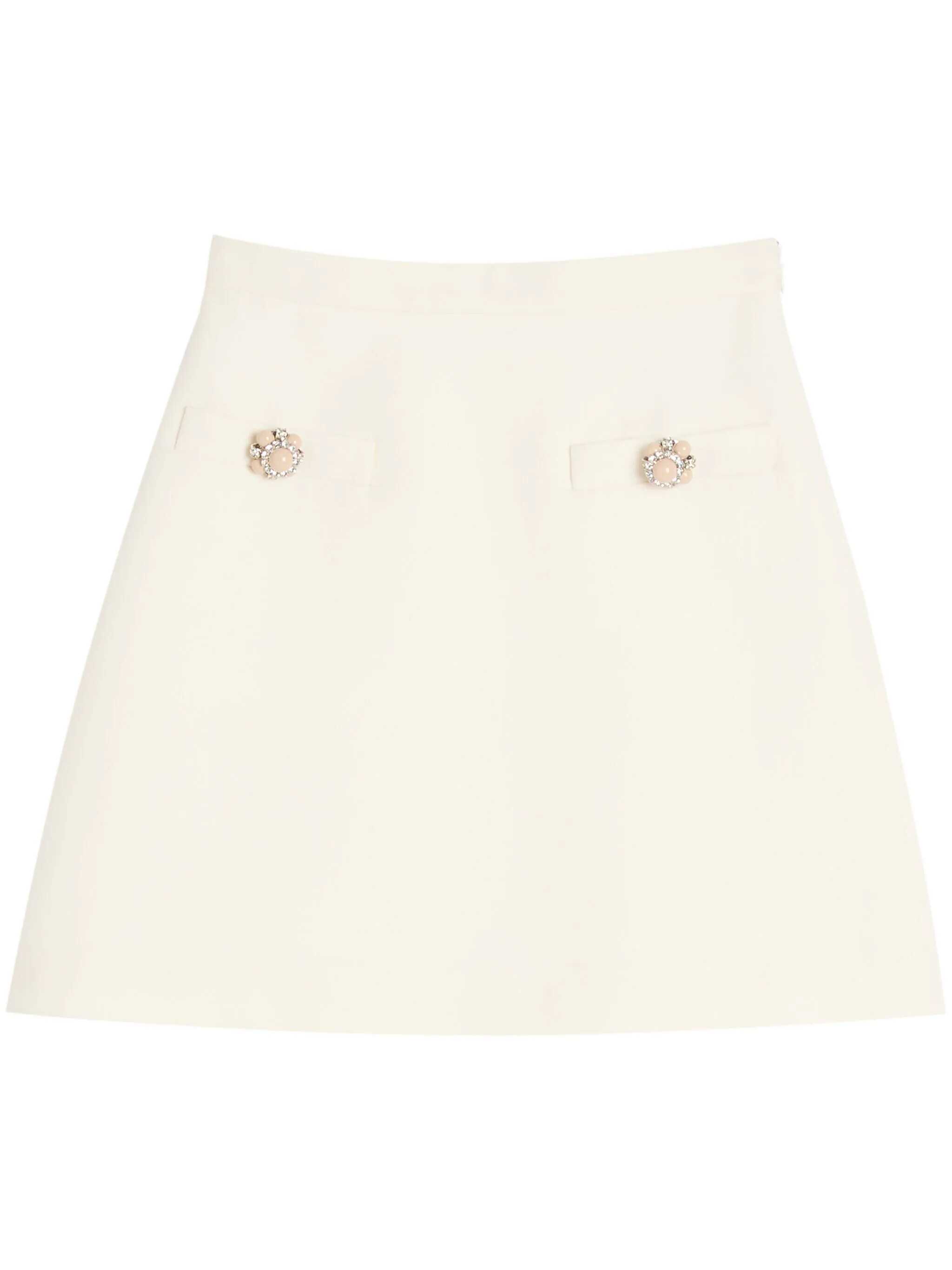 Valentino Garavani White Solid Skirt, Lateral And Hook Closure, Frontal Jewel Buttons Details, EU SIZE (IT)
