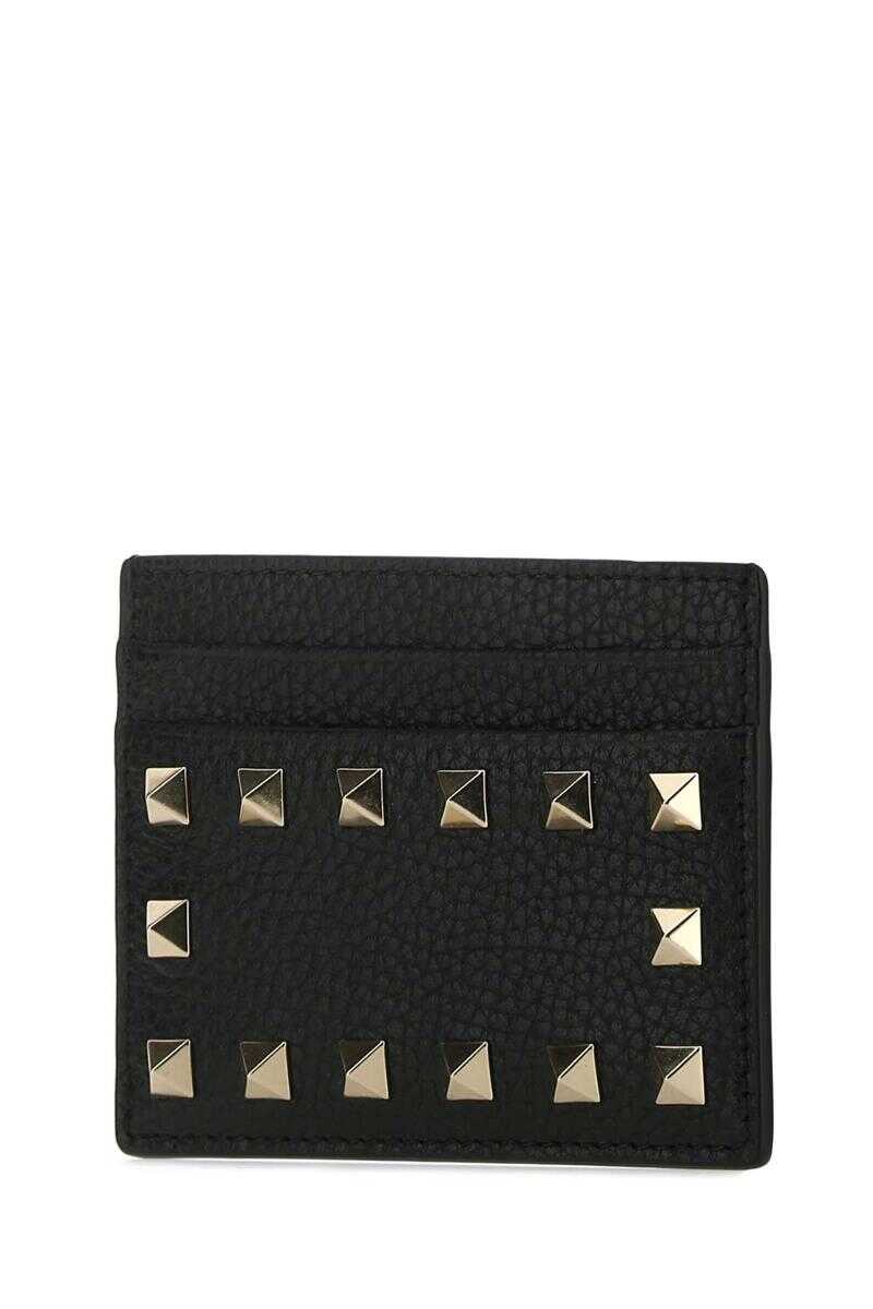 Black leather Rockstud card holder Width: 10,5 cm Height: 8 cm