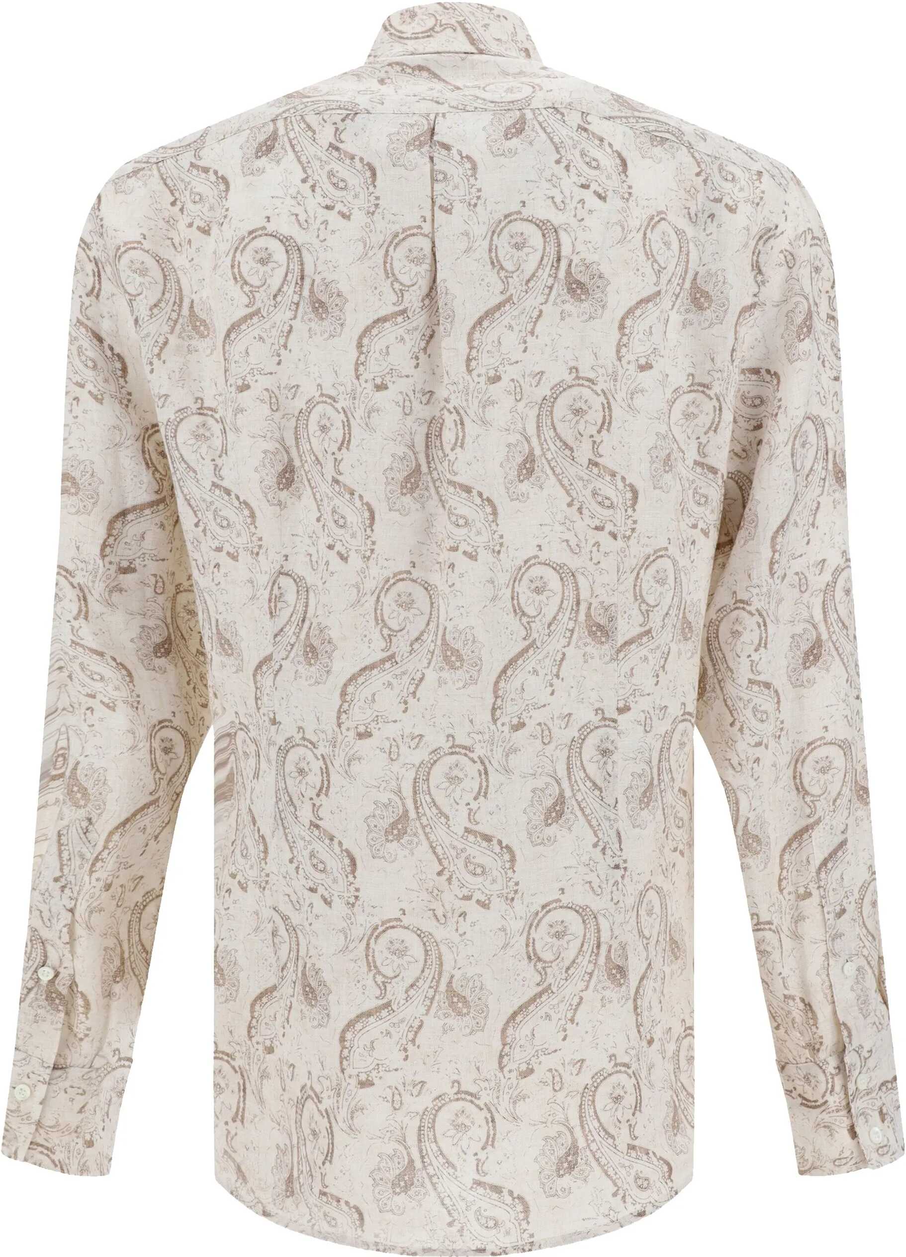 Brunello Cucinelli's linen shirt is an elegant, lightweight garment perfect for the warmer season. The classic collar adds a touch of sophistication, while the front button closure ensures a clean, sophisticated look. Adjustable button cuffs offer a customizable fit, ensuring comfort and practicality. The elegant and intricate paisley design enhances the shirt with a distinctive pattern that catches the eye without being overdone.