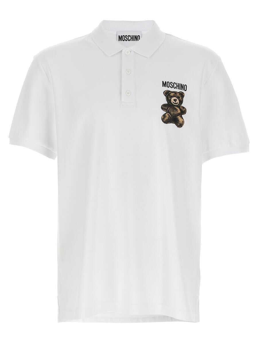 Polo shirt in cotton piqué with front 'Teddy' print, collar and buttons, and short sleeves