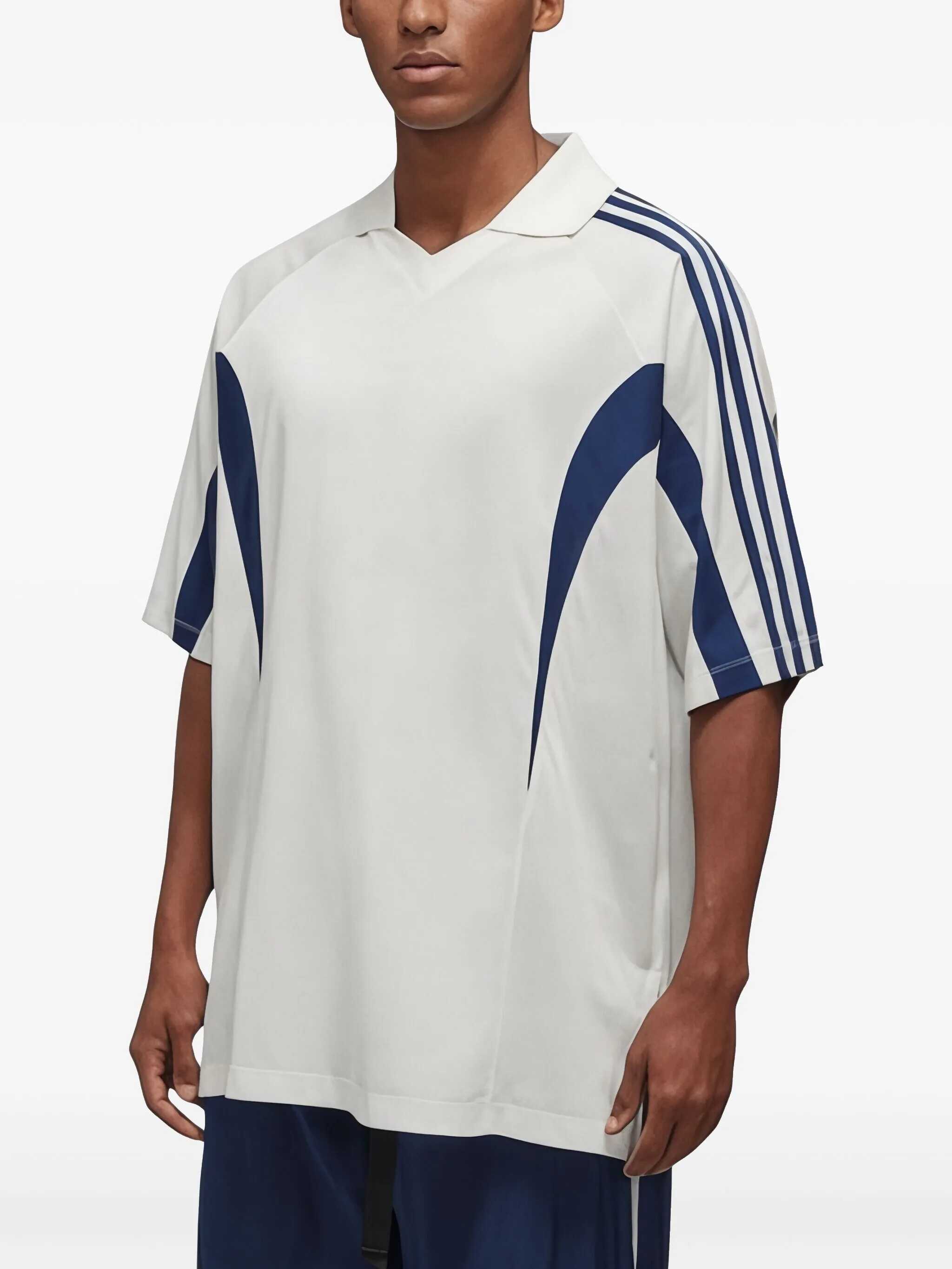 Y-3 T-shirt in White cotton blend. Short sleeves. Ribbed shirt collar. Contrasting details on the front and back.