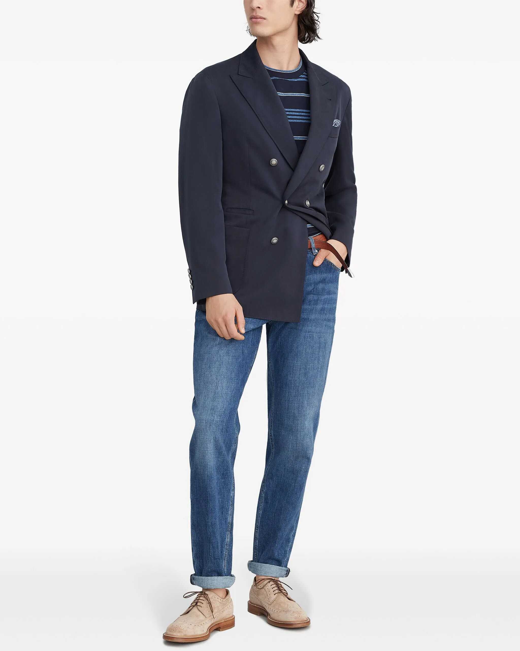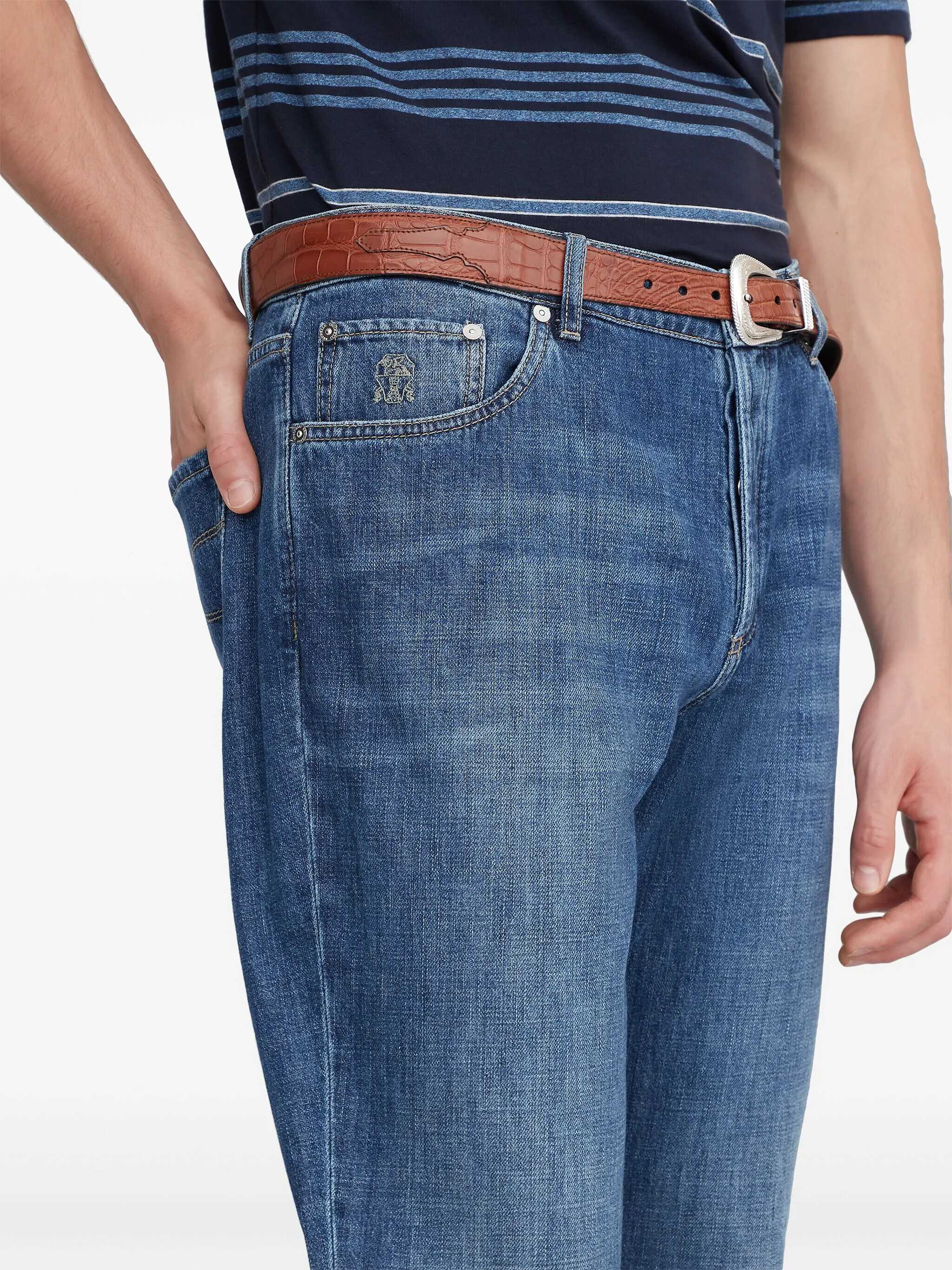 The cotton Jeans by Brunello Cucinelli are a casual yet refined style, perfect for a versatile, contemporary look. The front button closure adds a touch of originality, while the straight five-pocket style offers a comfortable fit and classic design. Belt loops on the waistband allow you to customize the fit. A leather patch with the brand's iconic pressure-printed signature is applied to the back, adding a distinctive, high-quality detail. The turn-up hem adds a touch of elegance to the design, making these jeans ideal for those seeking a garment that is both luxurious and practical.