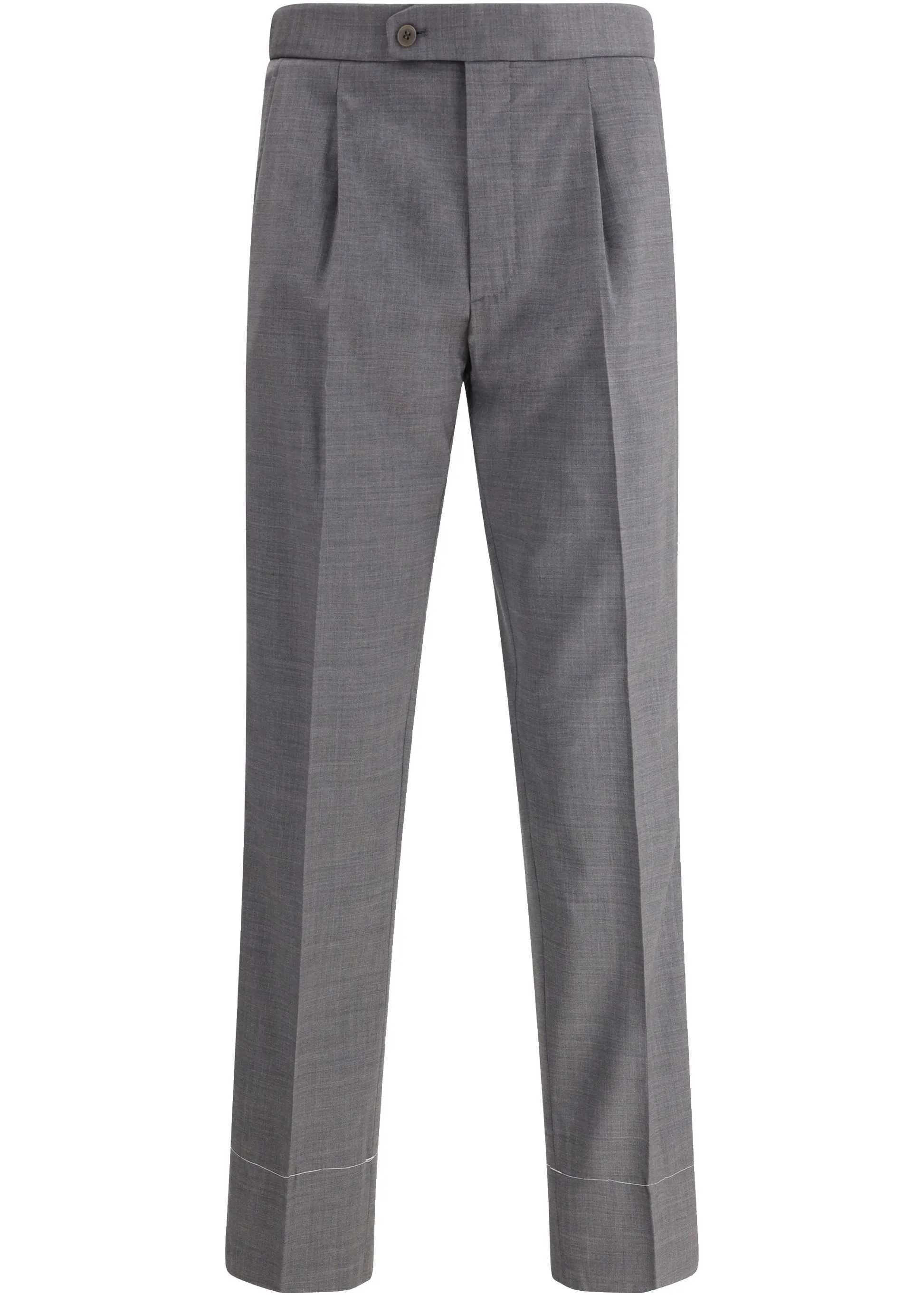 The wool Firenze Pants by Brioni are an elegant and contemporary style, featuring a slim cut that creates a sleek silhouette. The front closure is equipped with a hook and zipper, while the adjustable waistband with buttons ensures optimal comfort. The two side welt pockets and two welt pockets on the back with buttons add practicality and a touch of sophistication.