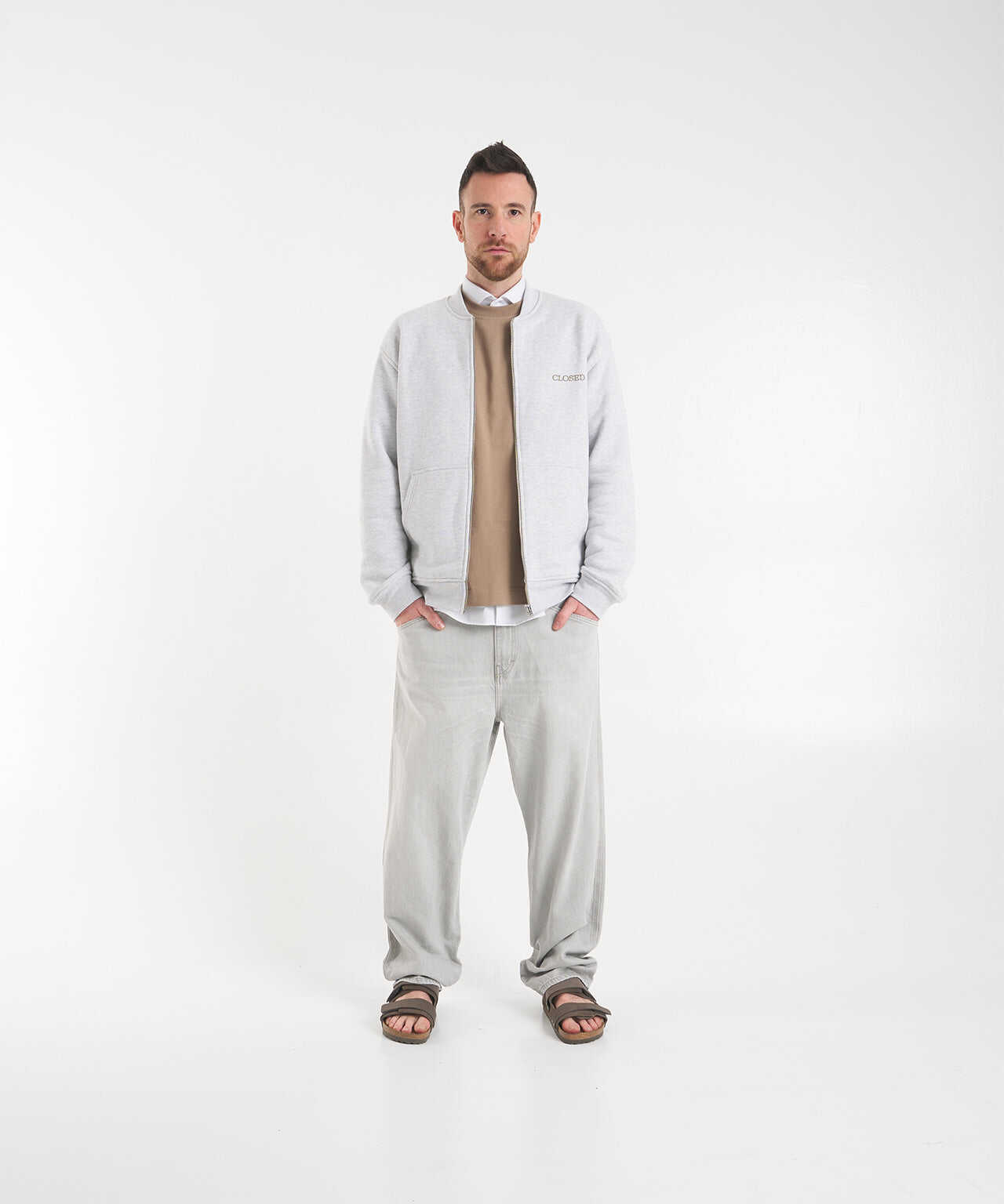 Front button and zip closure