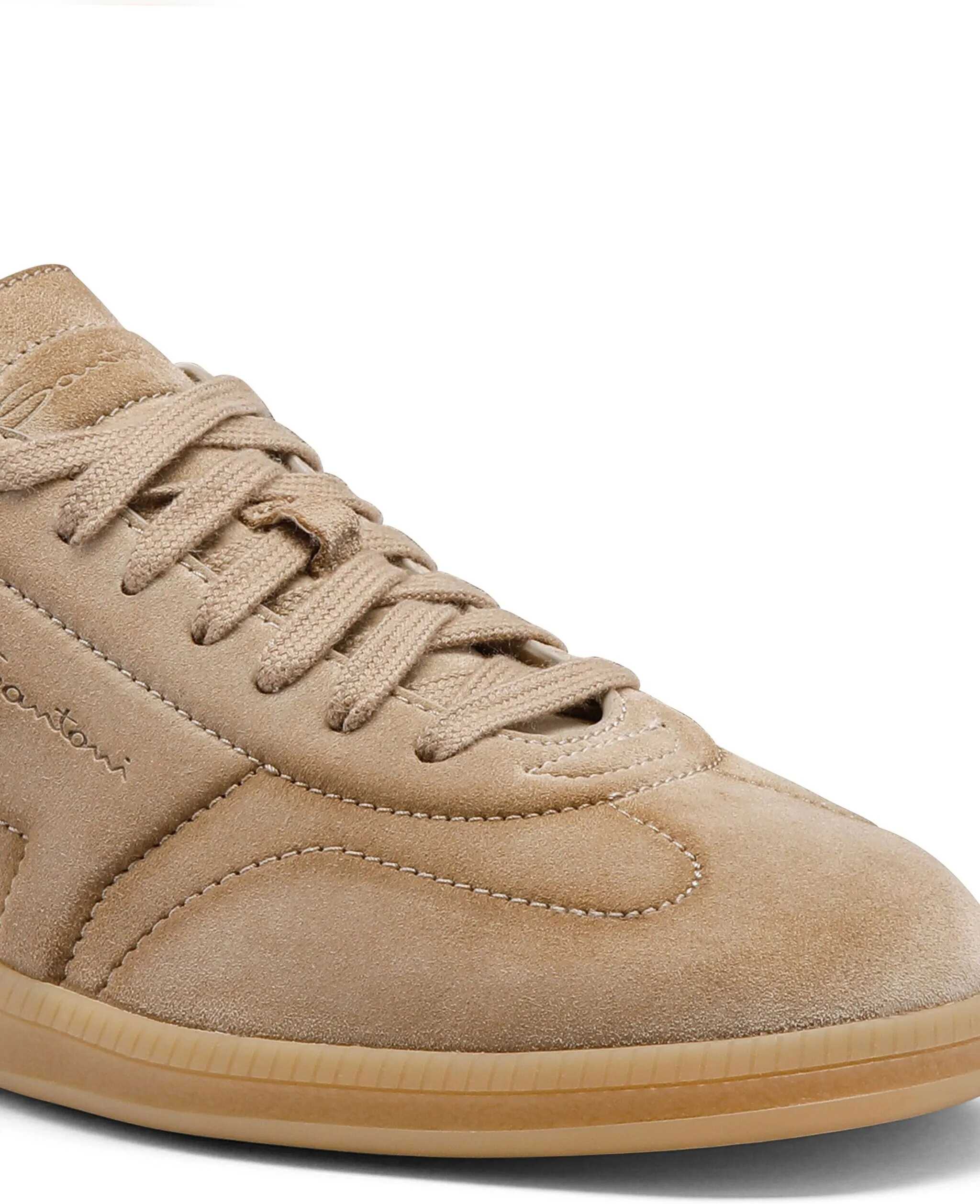 Santoni's leather Sneakers combine a simple and sophisticated design. The suede material provides a soft and refined texture, while the front lace-up closure and round toe ensure comfort. The flat sole adds practicality and versatility, while the brand's signature pressure-printed on the external side panel adds a touch of discreet elegance, making these sneakers ideal for a refined yet casual style.