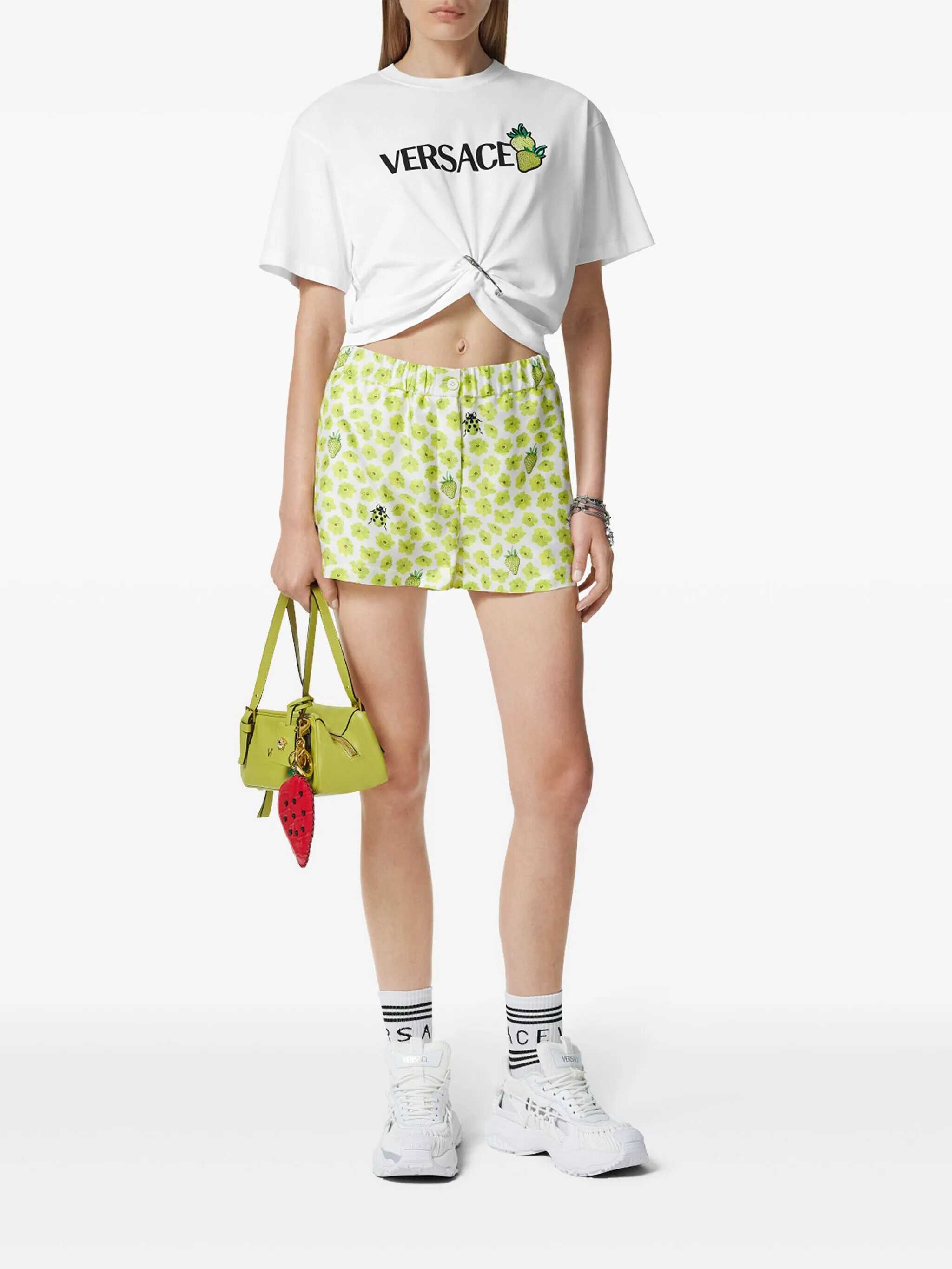 Cotton T-shirt with 'Strawberry patch' and front logo print, crew neck, 'Safety pin' curling and short sleeves