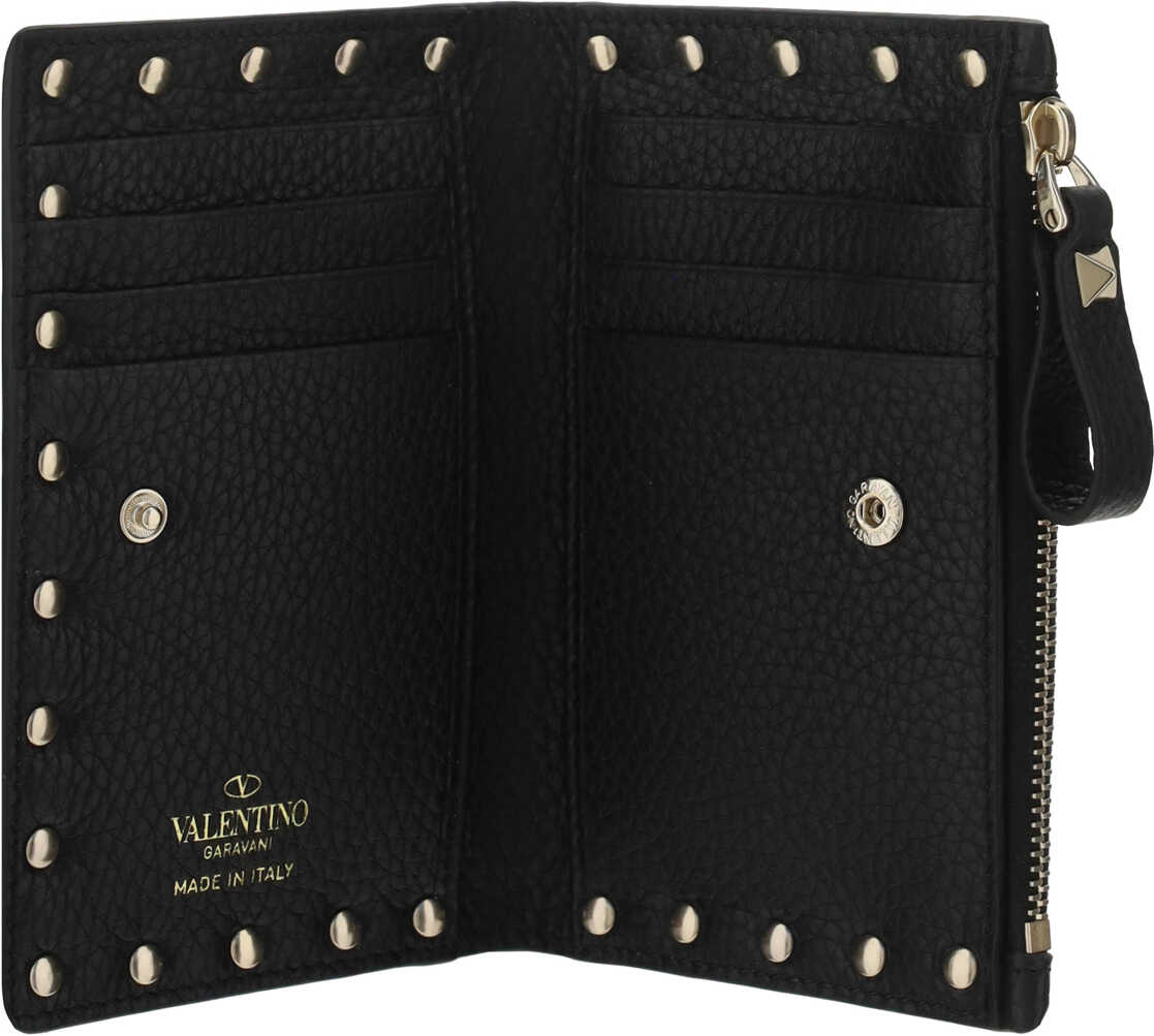 Valentino Garavani's leather Card Holder is an elegant and compact accessory. The billfold model is embellished with the iconic Rockstud studs applied to the front and back. The interior features card slots and the iconic press-stamped monogram. The snap-button closure provides security, while the zippered welt pocket allows for convenient storage of coins and small items.