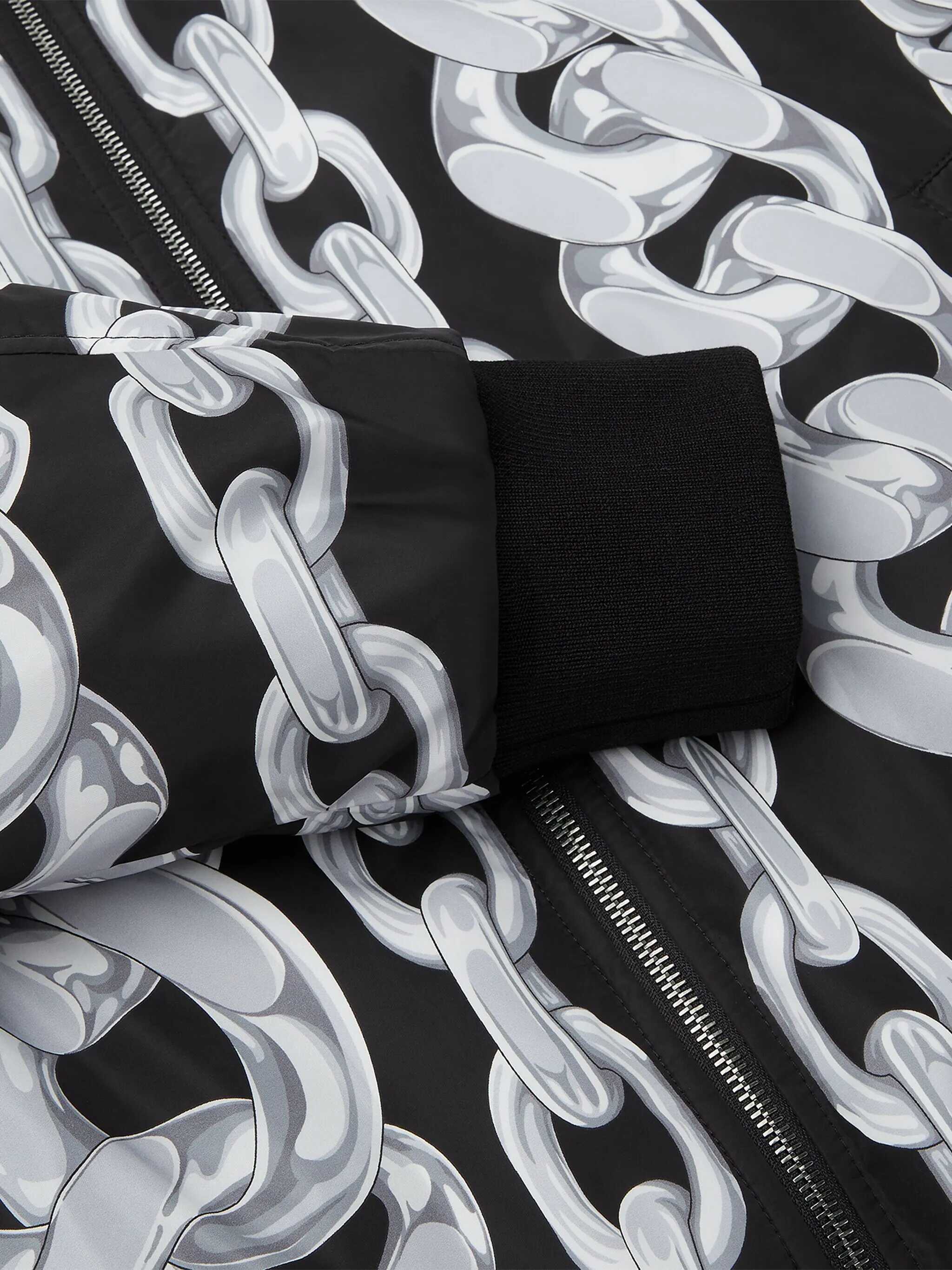 Reversible bomber jacket in solid color padded fabric and all-over 'Medusa Chains' print with ribbed knit details, zip closure, pockets, long cuffed sleeves