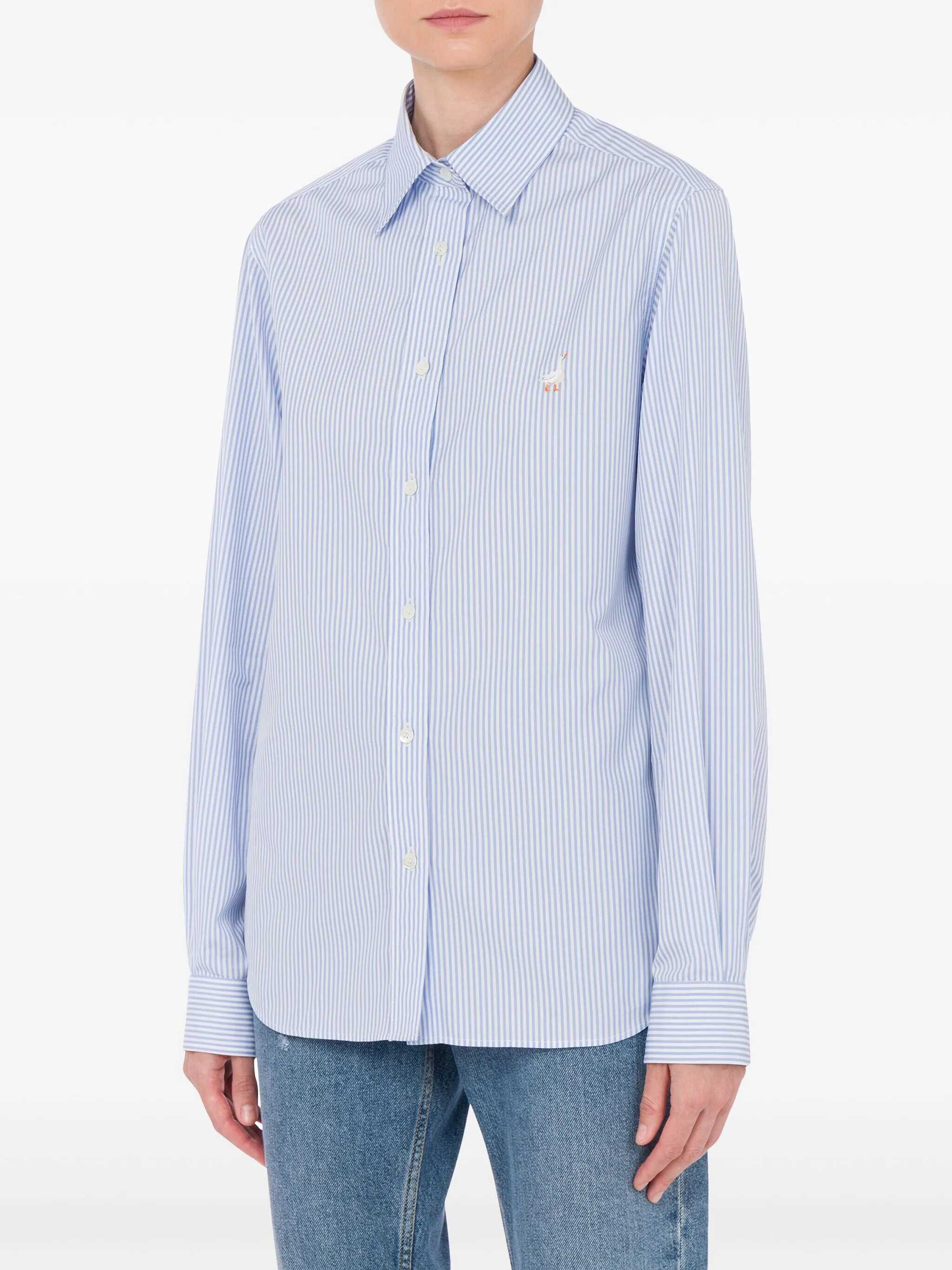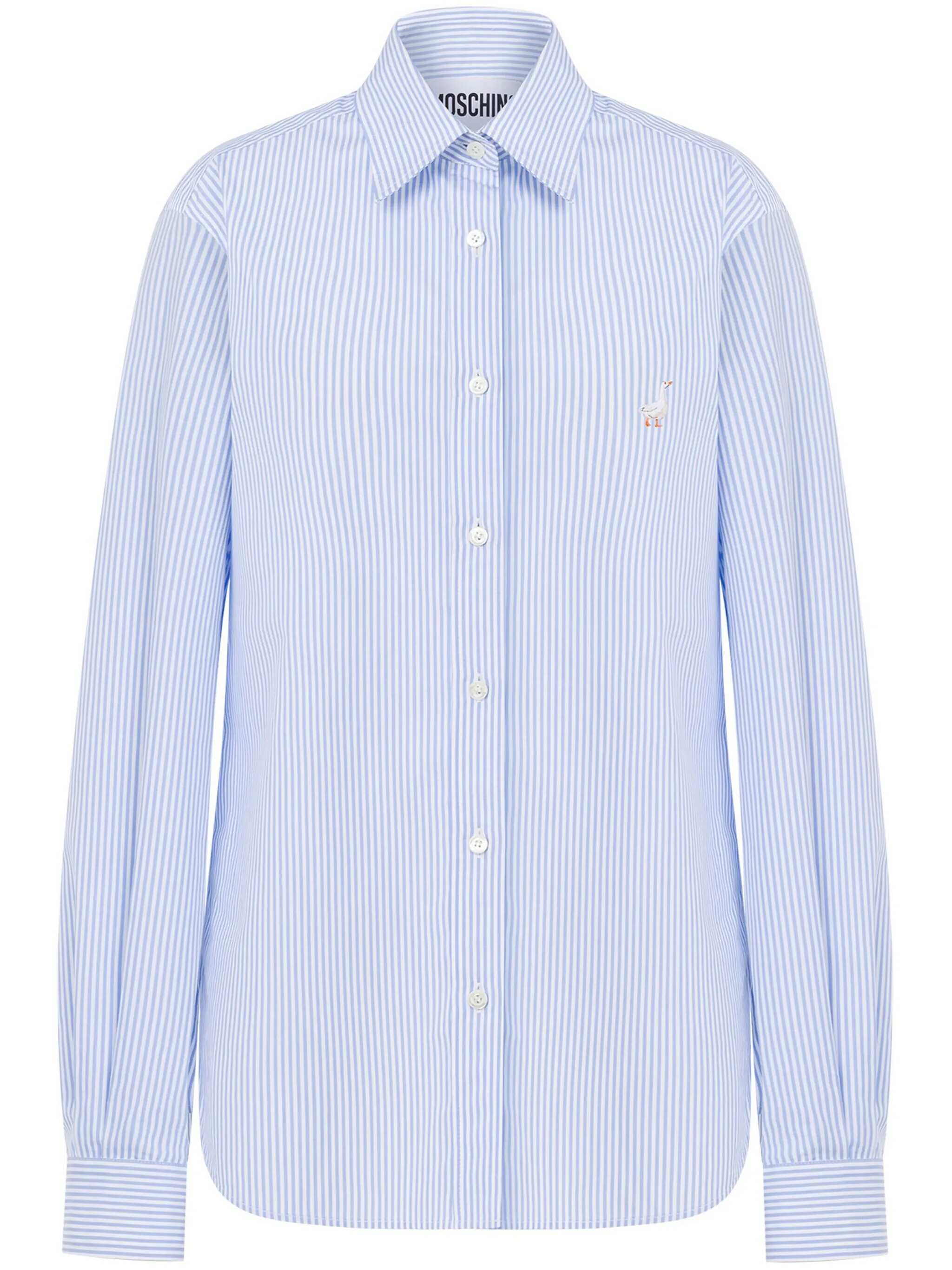 Striped cotton poplin shirt, front 'Oca' embroidery, button closure, back logo embroidery, long cuffed sleeves