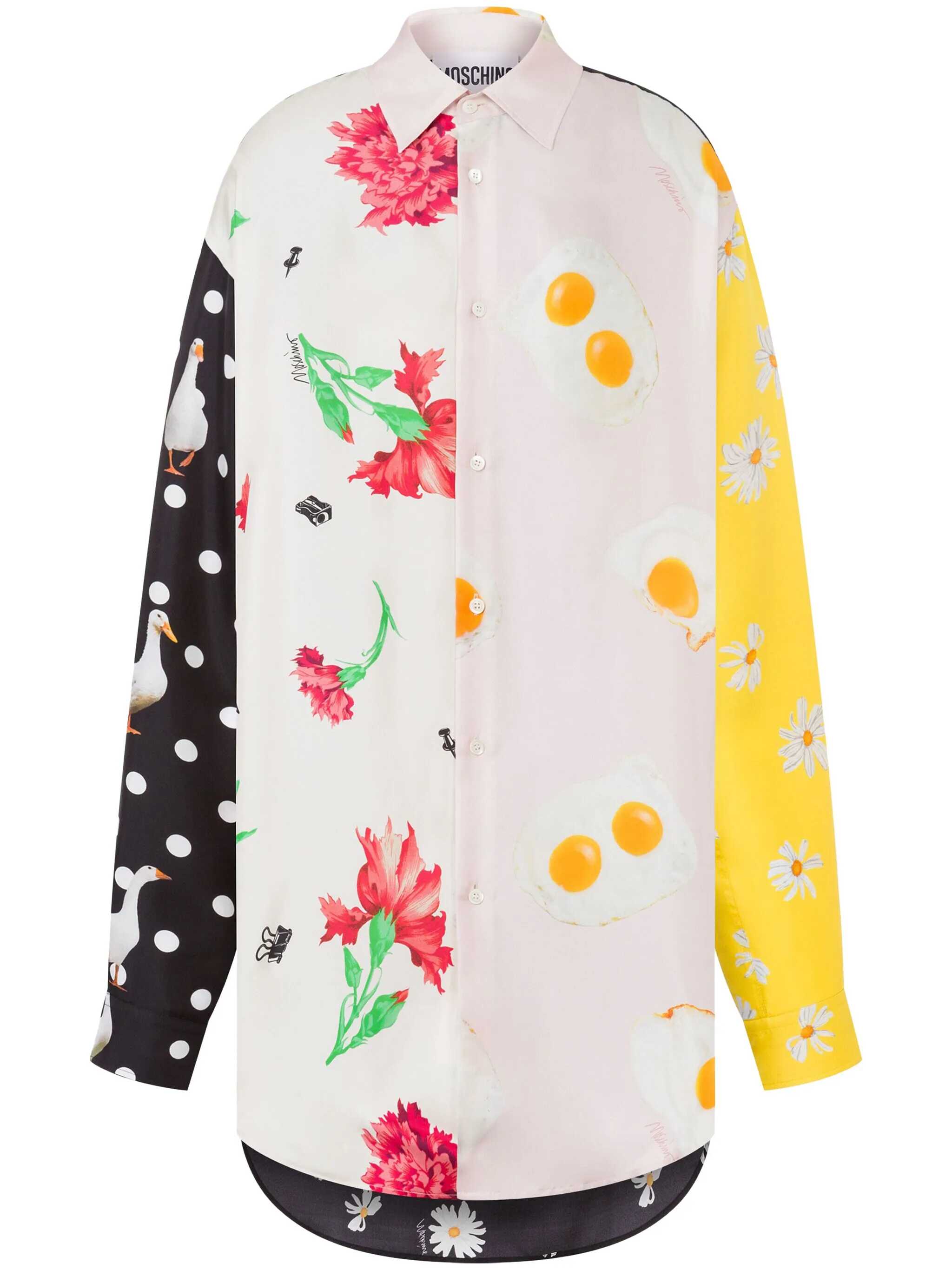 Silk shirt with all-over patchwork print, front button closure, long cuffed sleeves