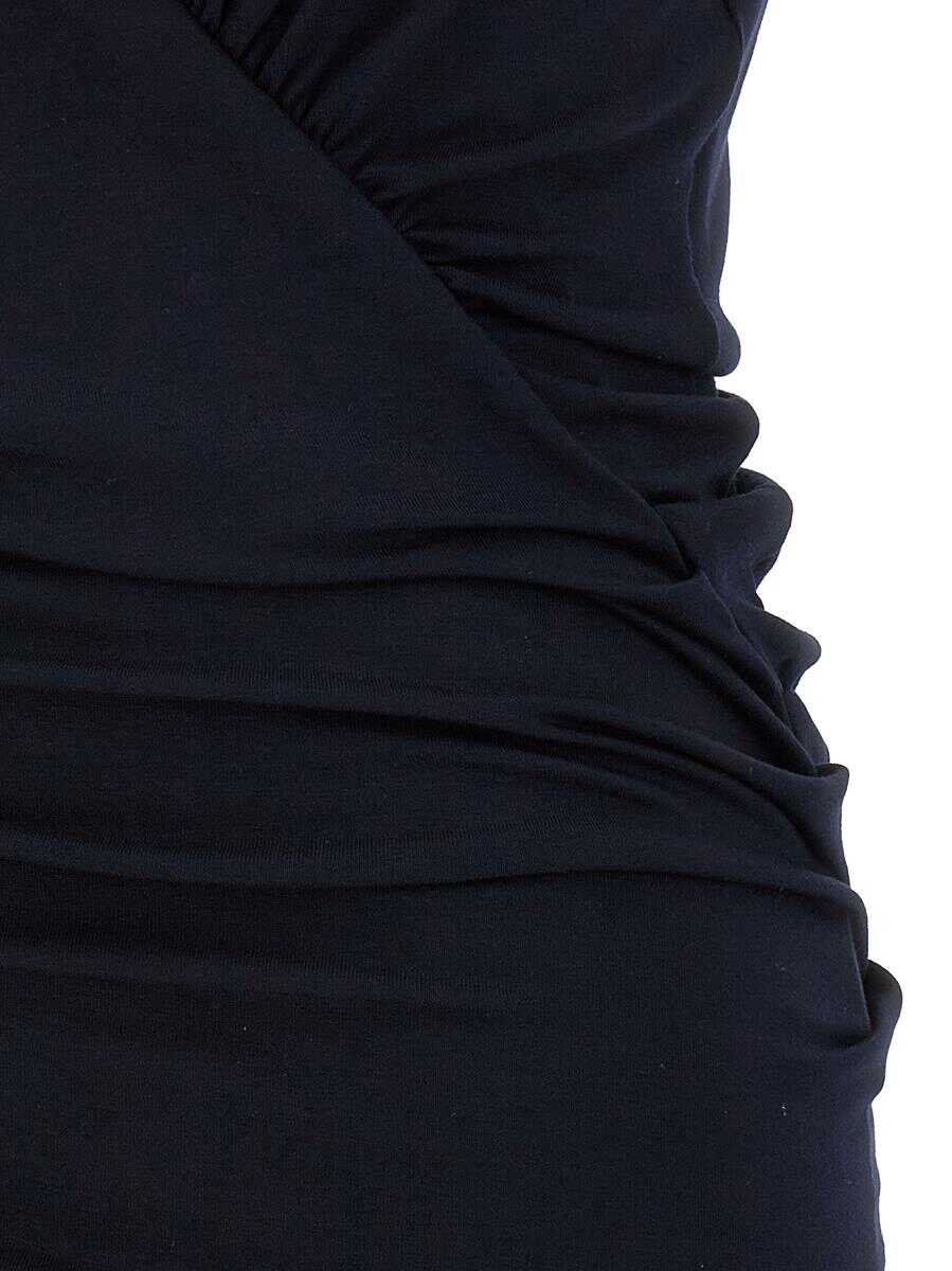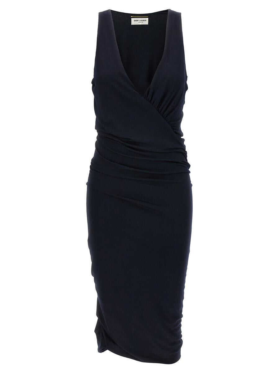 Sleeveless jersey midi dress with wide neck and ruched details
