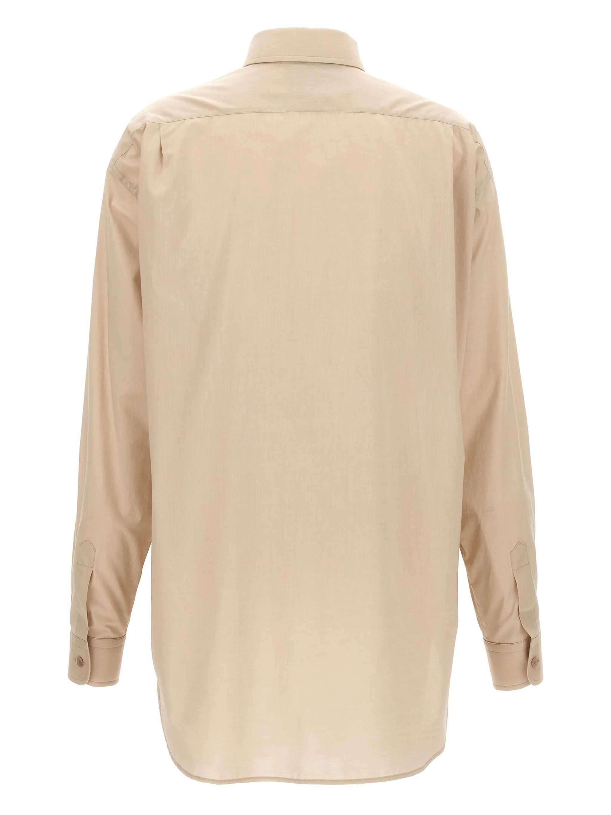 Cotton shirt with patch pocket detail, front embroidery, front button closure, slightly loose fit, long cuffed sleeves