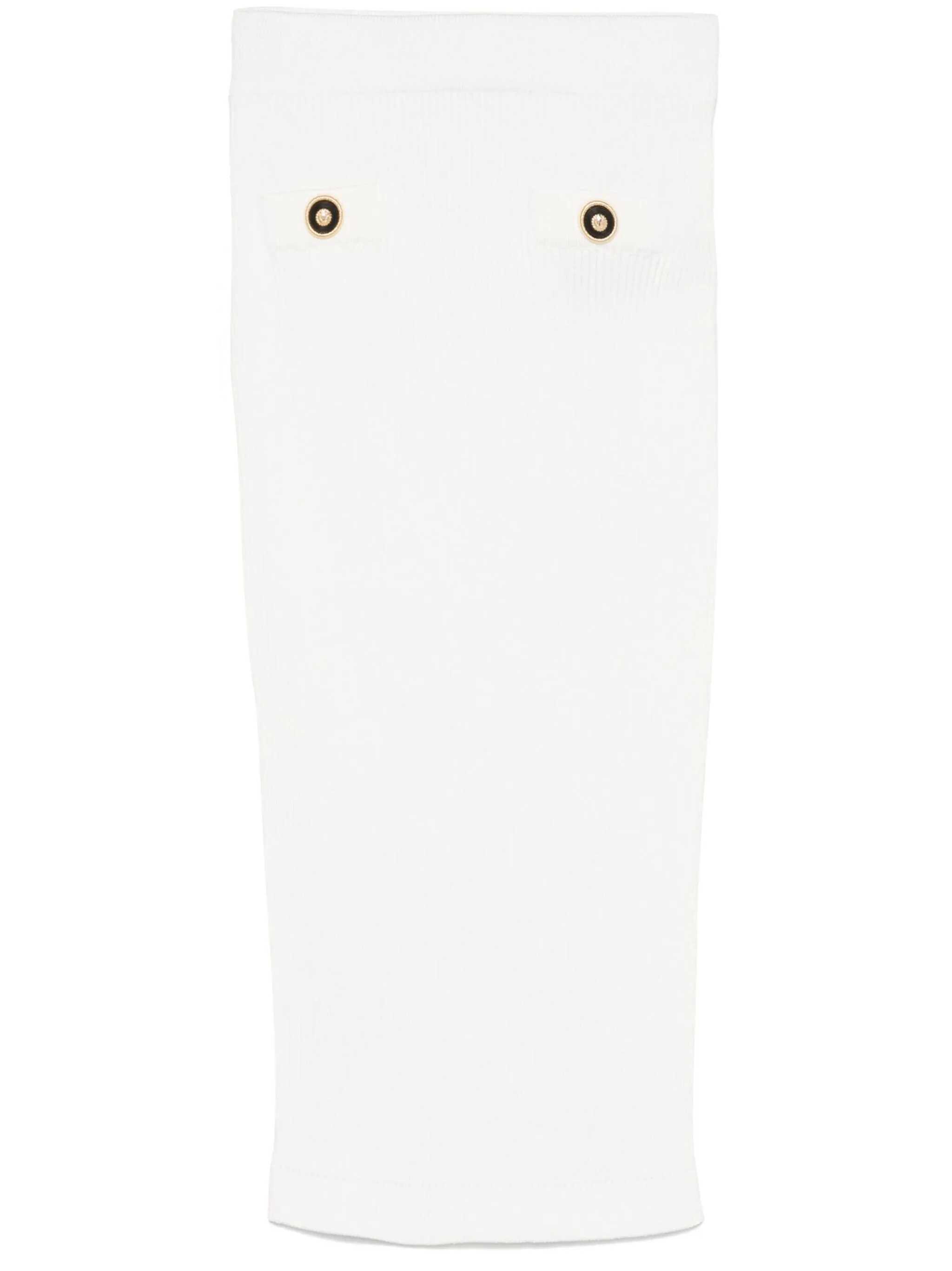 Characteristics white elasticated waist fake pocket detail with decorative buttoning