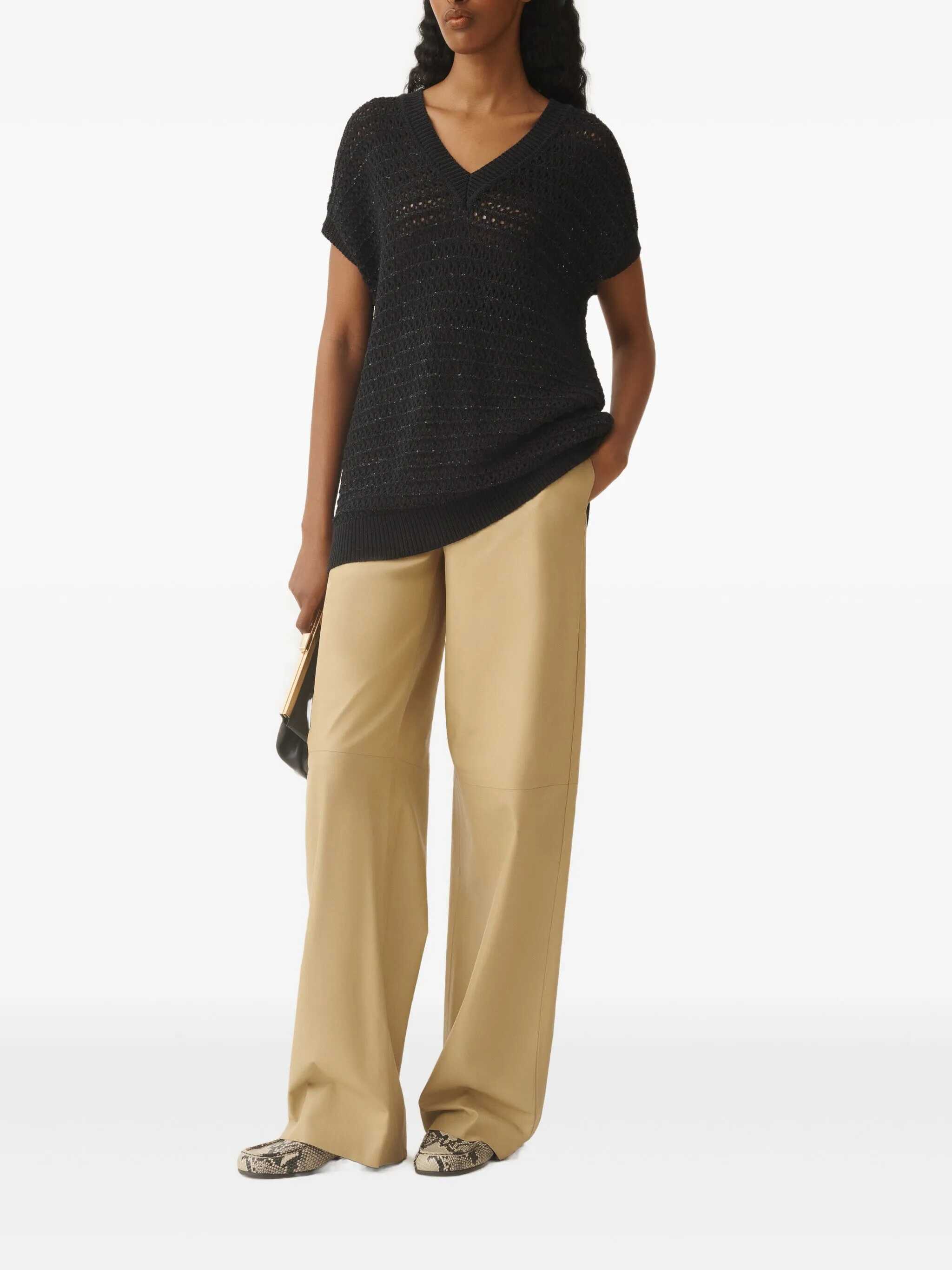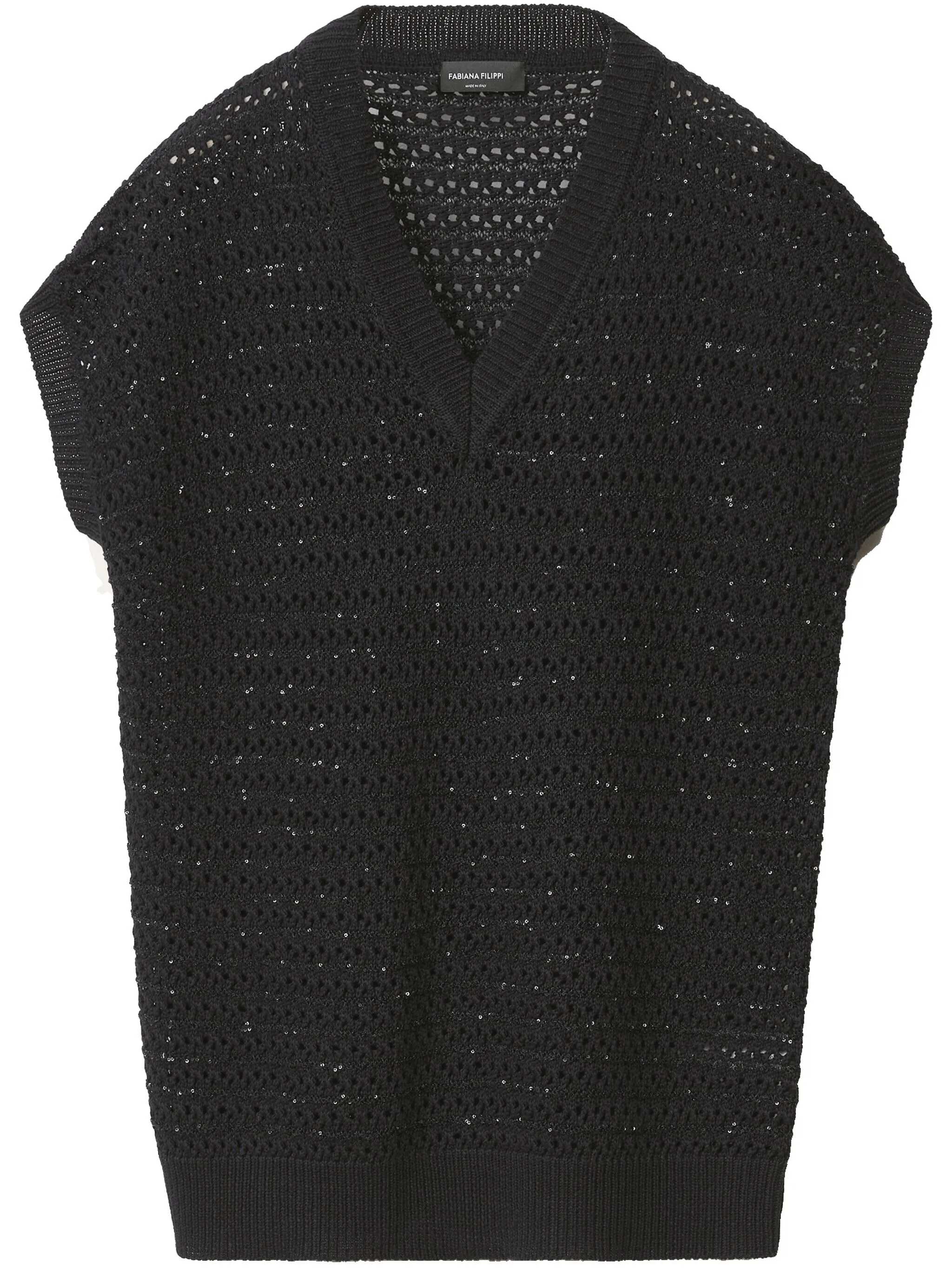 SEQUIN STRIPED CROCHET V NECK CAPE SLEEVE SWEATER