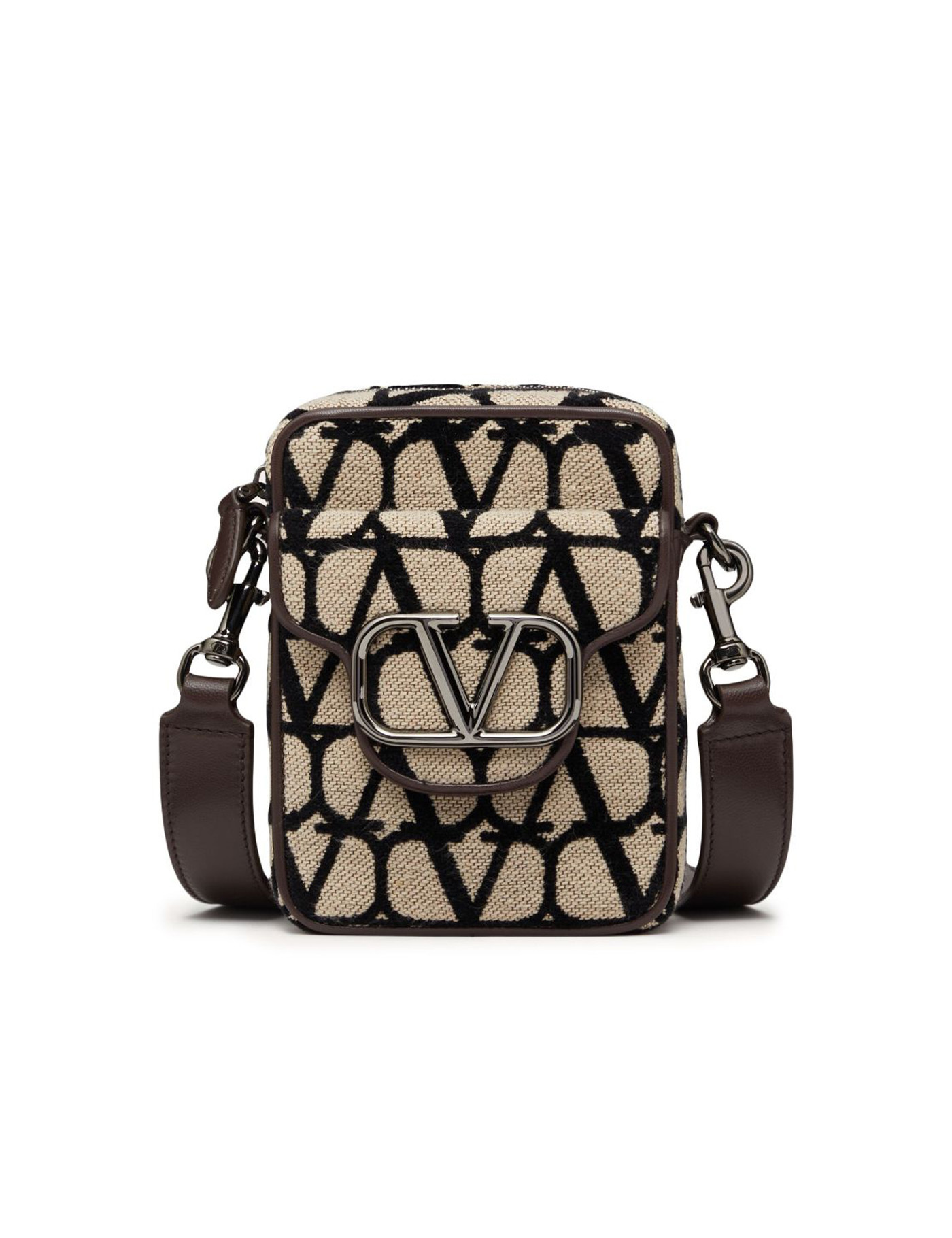 Valentino Garavani mini Locò crossbody bag made of Toile Iconographe with VLogo detail on the flap with magnetic closure and leather trims. It features zipper closure, leather interior with three open pockets, front flat pocket. Adjustable and removable leather shoulder strap, ruthenium-finished metalware.