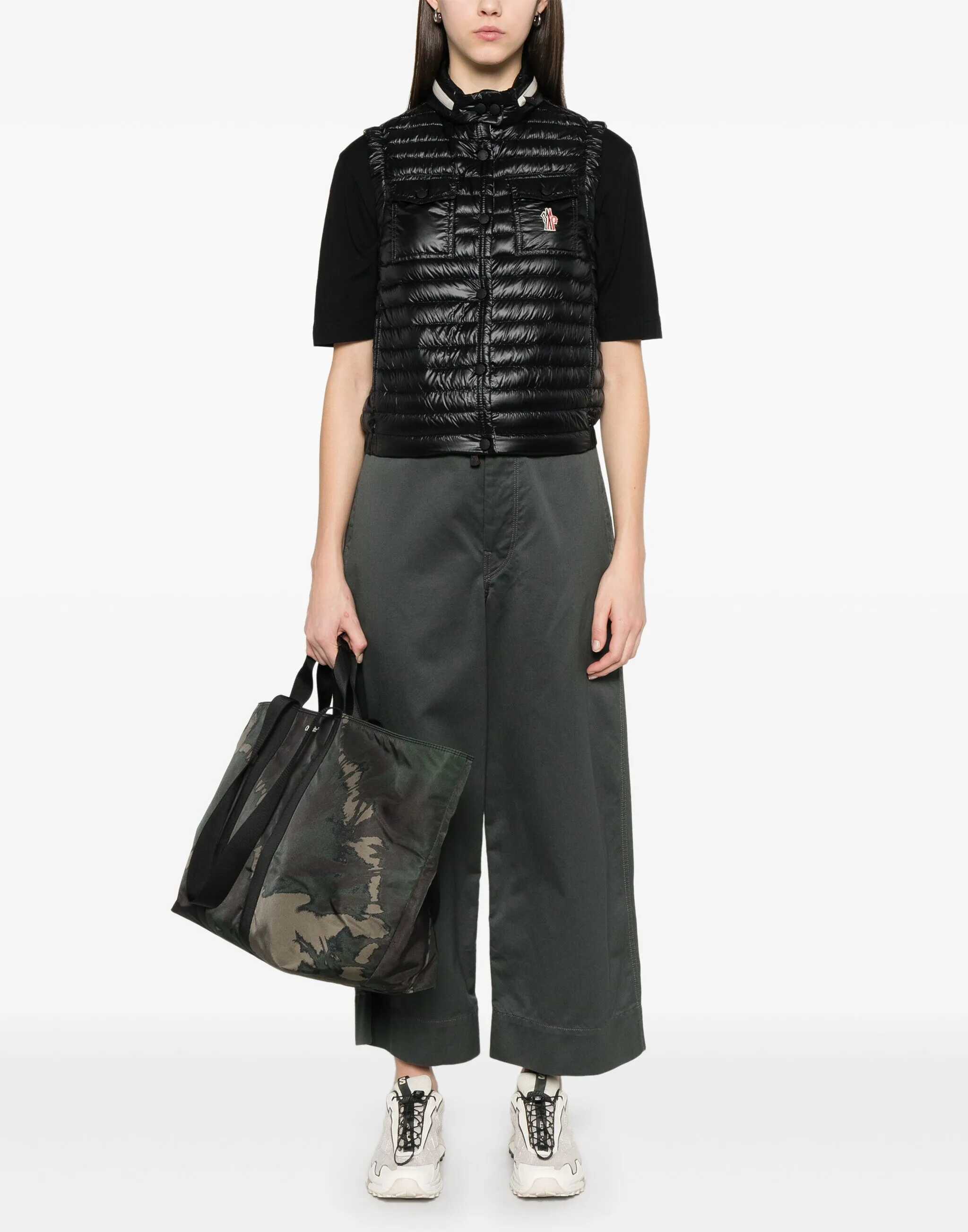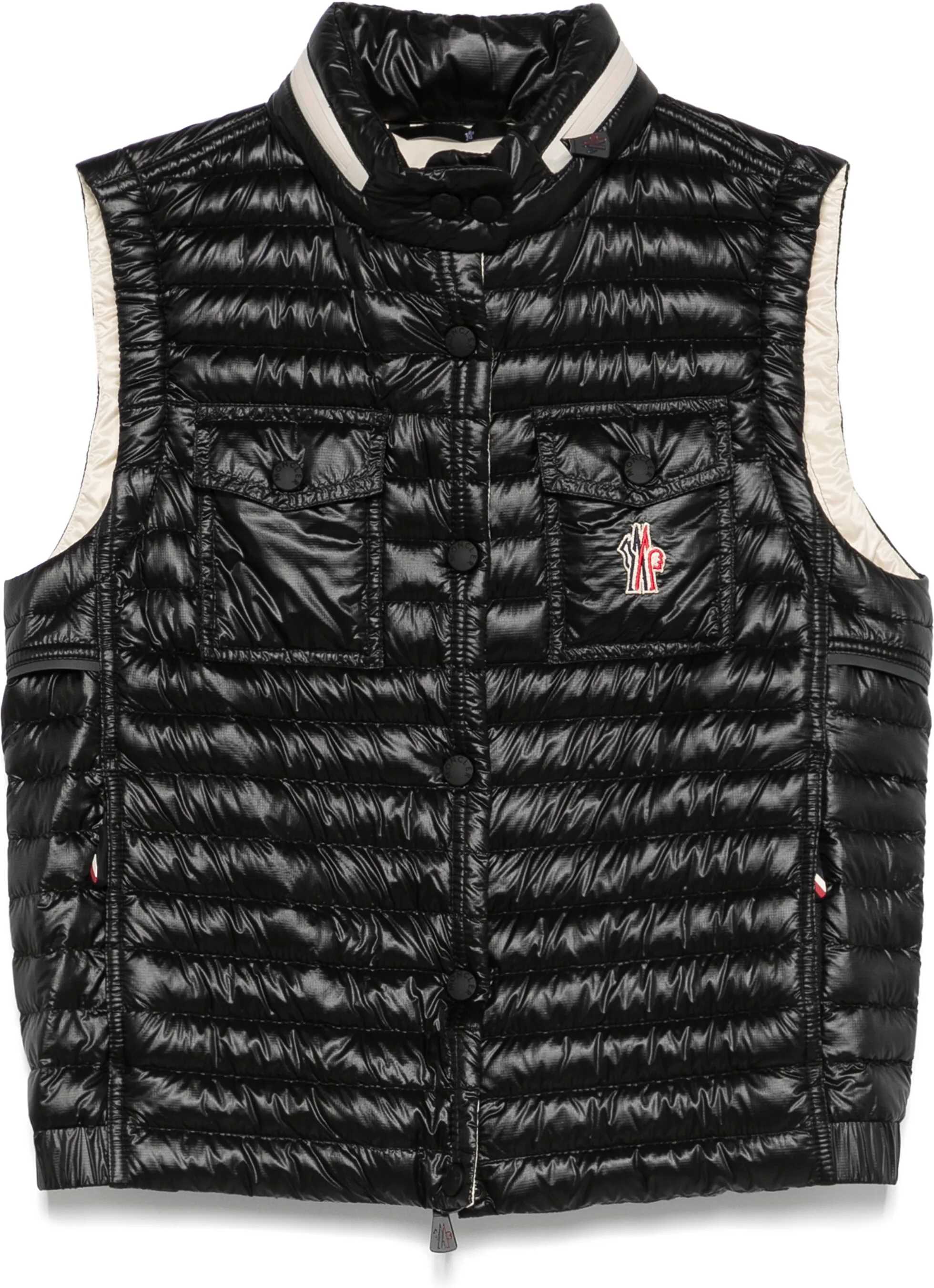 The Gumiane down Gilet by Moncler Grenoble is a practical and trendy garment ideal for cooler days. The front snap closure offers a secure and comfortable fit, while the two patch pockets on the front add functionality. The padded, quilted design provides warmth without sacrificing elegant style. The brand's iconic logo patch stitched on the front adds a distinctive and recognizable touch. Perfect for a sporty-chic look, this vest is a must-have for those seeking quality and style.