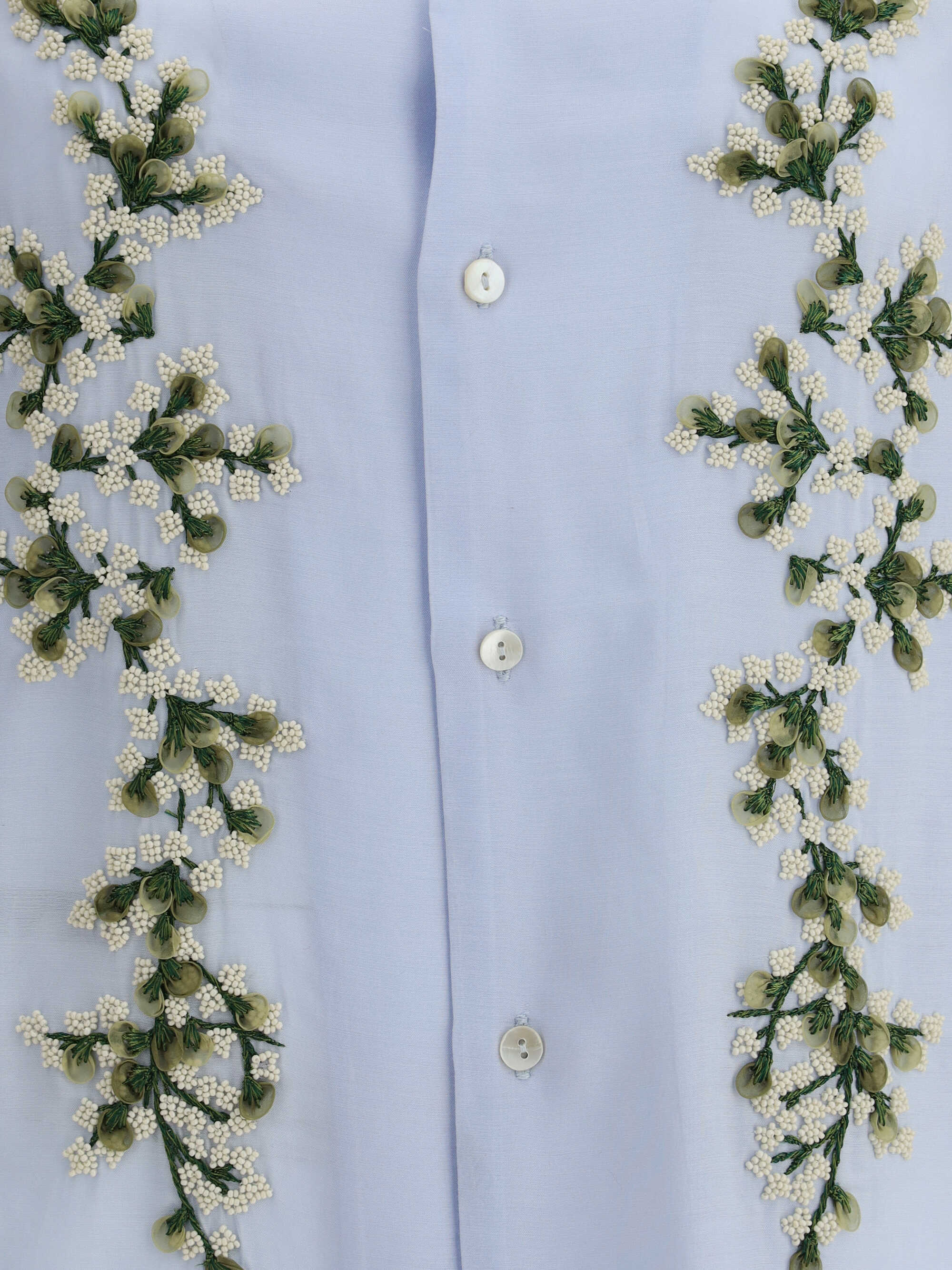 Baziszt's Tinees Shirt is an example of how simplicity and floral details can come together in a garment with understated and refined appeal. With a classic collar and front button closure, the design is clean and versatile, perfect for a variety of occasions. The real highlight, however, is the floral embroidery sewn on the front, which adds a fresh and feminine touch. The delicate but clearly visible embroidery gives the garment a sophisticated look without being too flashy.