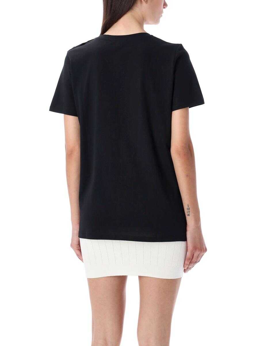 Three decorative gold-tone 'coin' button detail on the shoulder