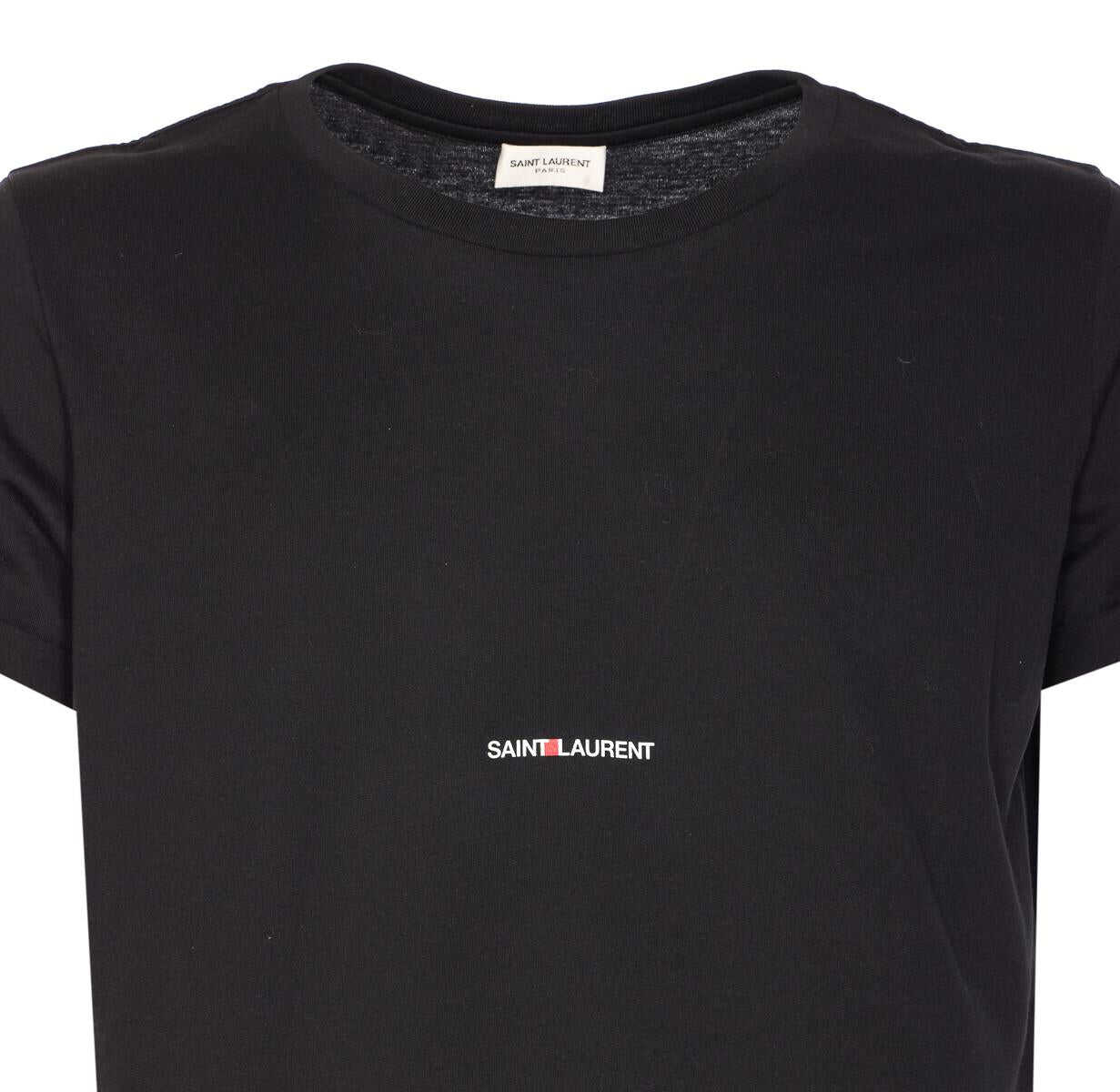 Saint Laurent Black T-Shirt, Round Neck, Frontal Logo, US SIZE