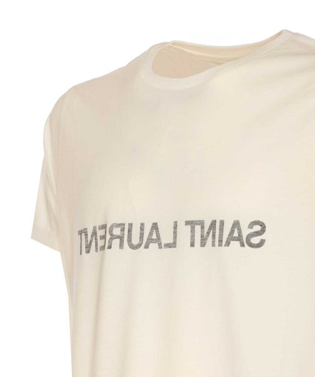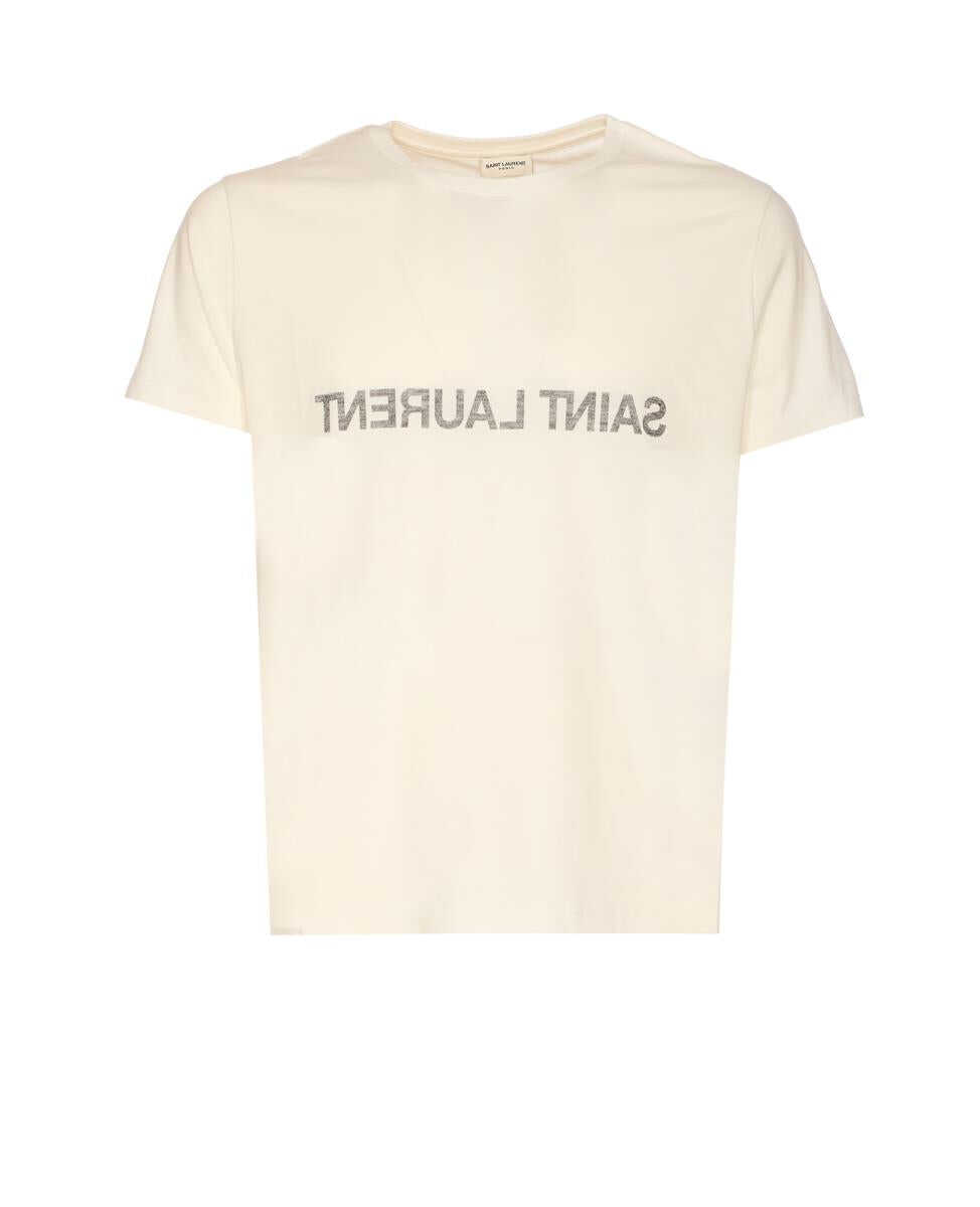 Saint Laurent White T-Shirt, Round Neck, Mirror Frontal Logo, US SIZE