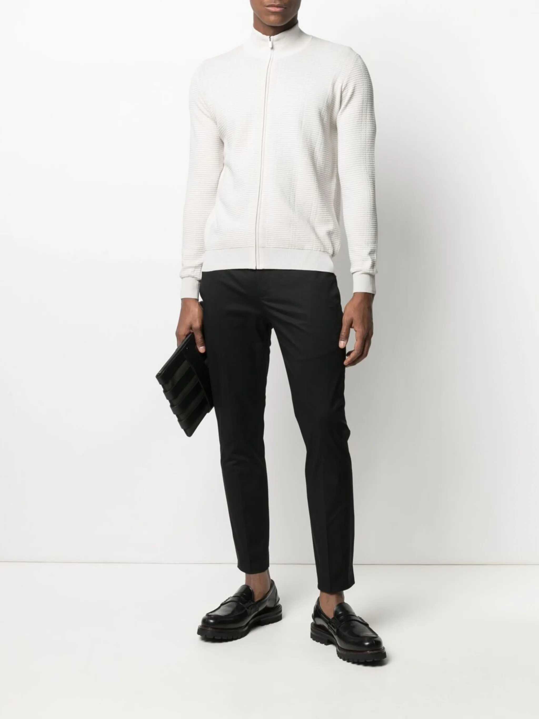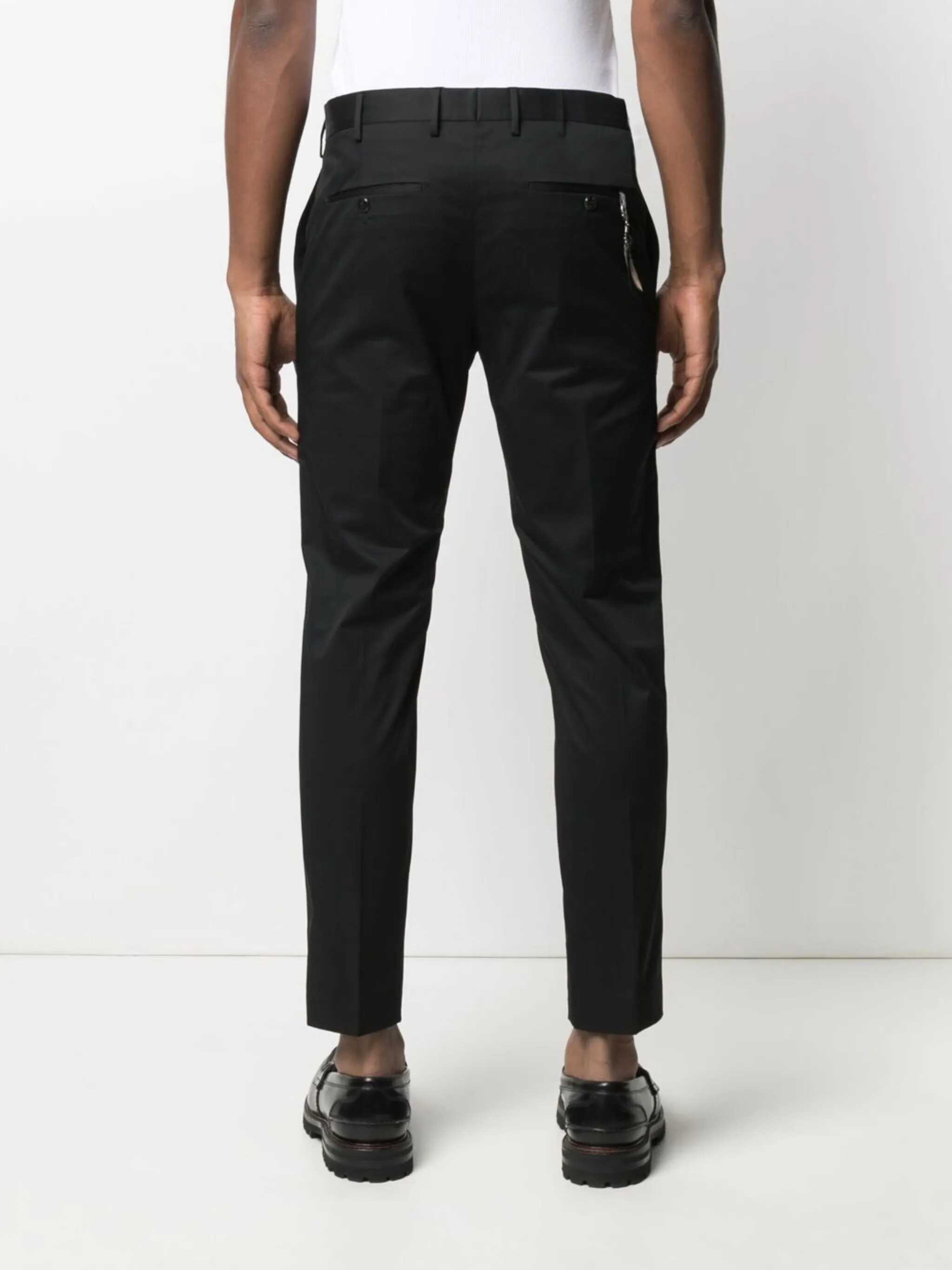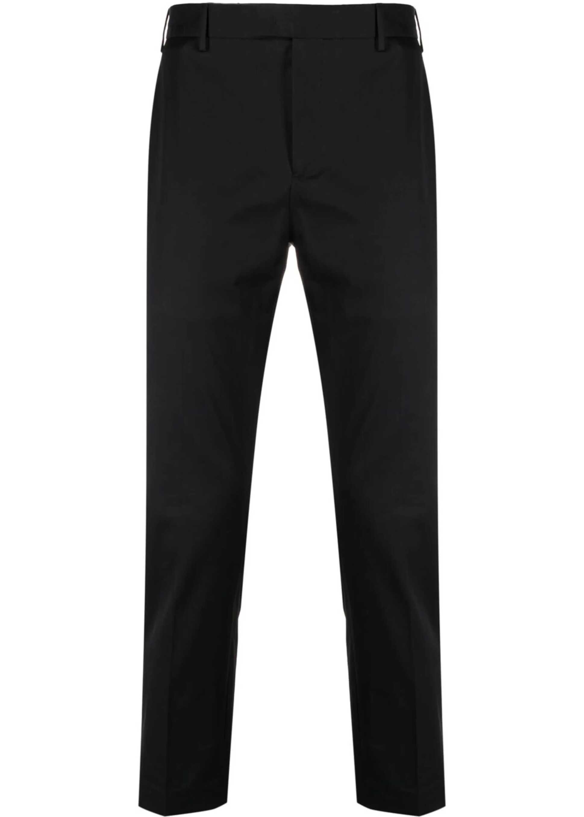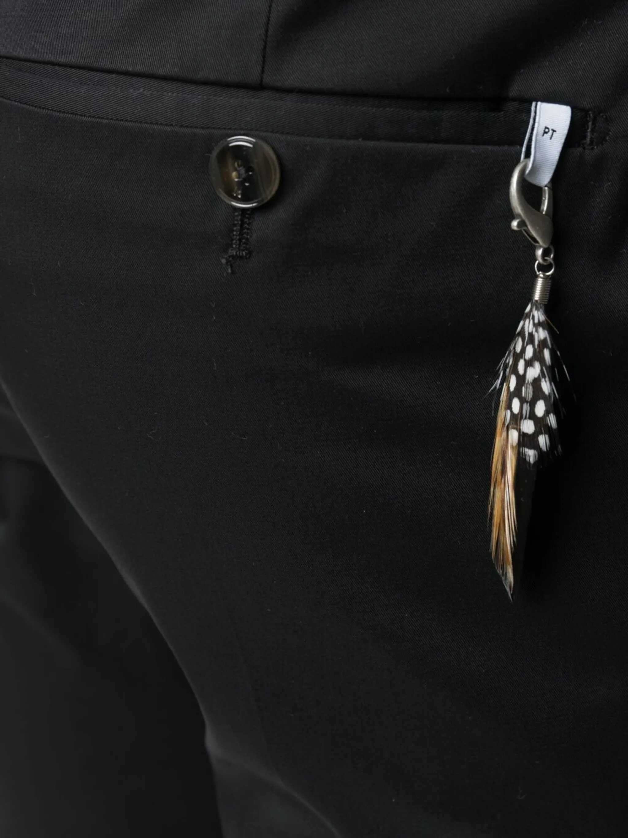 PT Torino's Cotton Pants combine elegance and practicality with a detail-oriented design. The front closure with hidden hooks and zipper gives a clean, sophisticated look, while the two side slash pockets offer a classic, functional touch. Back welt pockets, enhanced by a removable feather detail applied to one of them, add a distinctive and unique accent. Belt loops on the waistband allow you to customize the fit, while the regular fit ensures comfort and a modern silhouette.