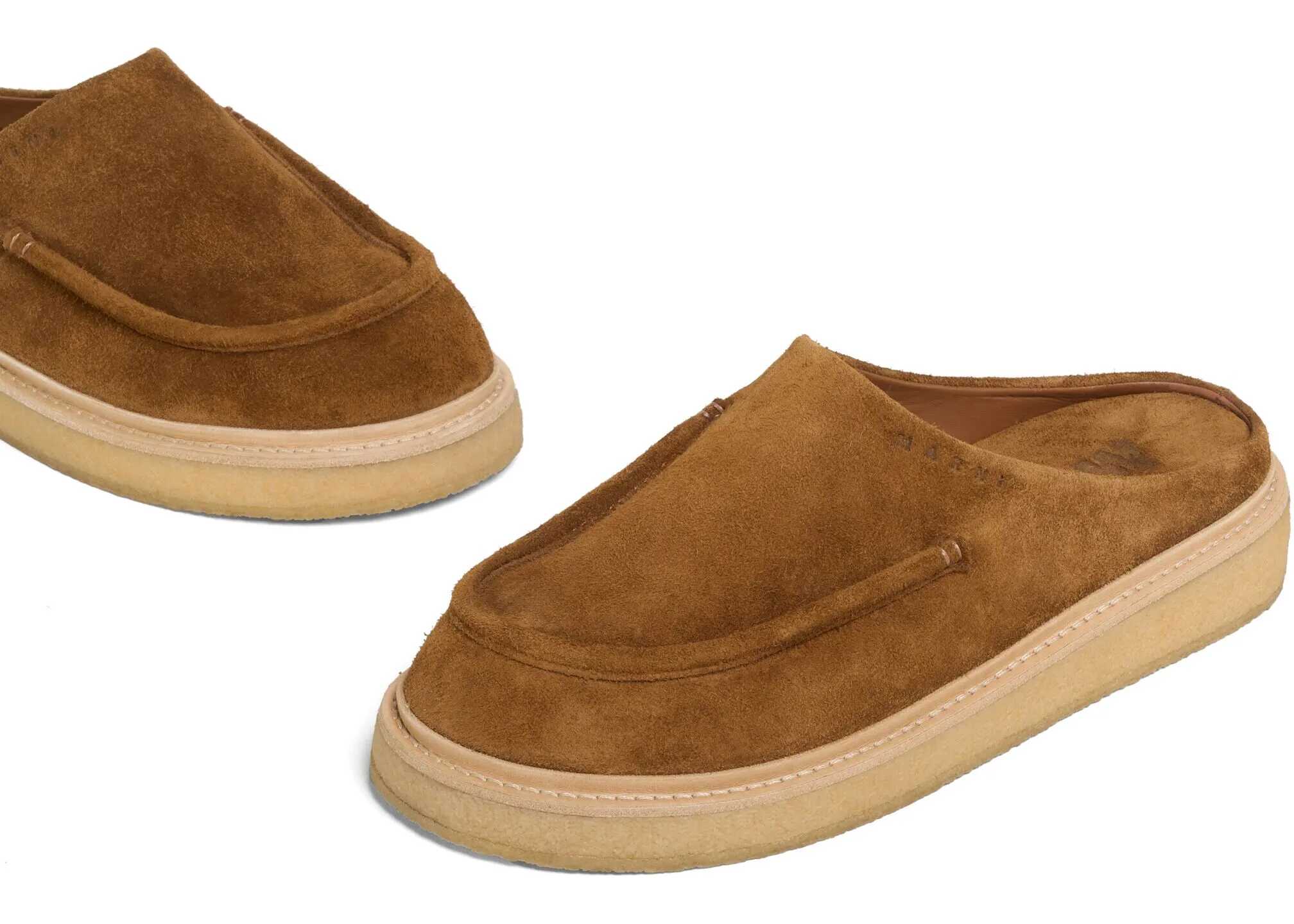 Marni's Suede Mules combine comfort and style with a refined, contemporary design. They feature a round toe, giving a balanced and versatile look, and the brand's iconic monogram applied on the front for a distinctive touch. The flat rubber sole ensures comfort and practicality, while the branded insole adds an exclusive detail. Perfect for casual and sophisticated elegance.