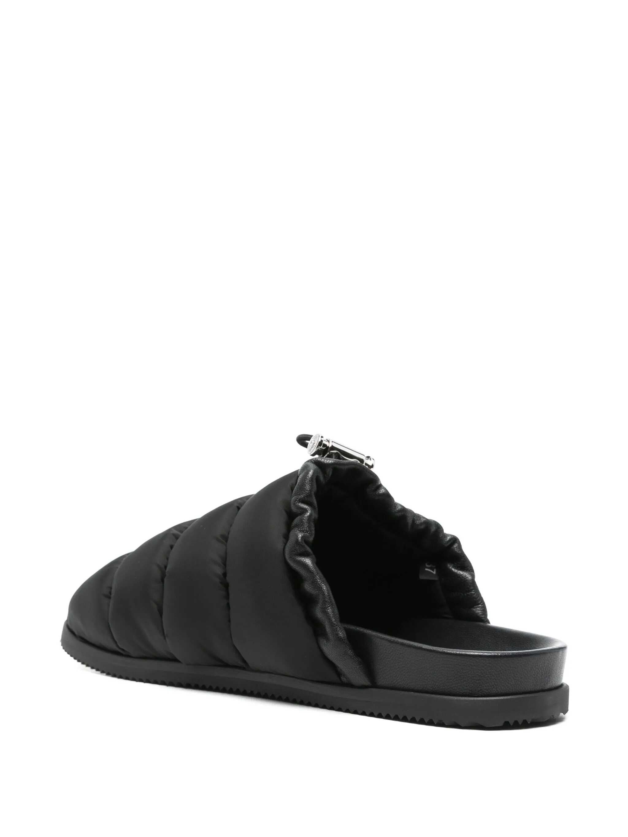 Mon Pocket padded mules reinterpret the iconic quilted style with a leather and nylon boudin quilting. The casual design is enhanced by a practical snap-button pocket, while the drawstring closure ensures a perfect fit. A 0.9-cm rubber sole completes the style.