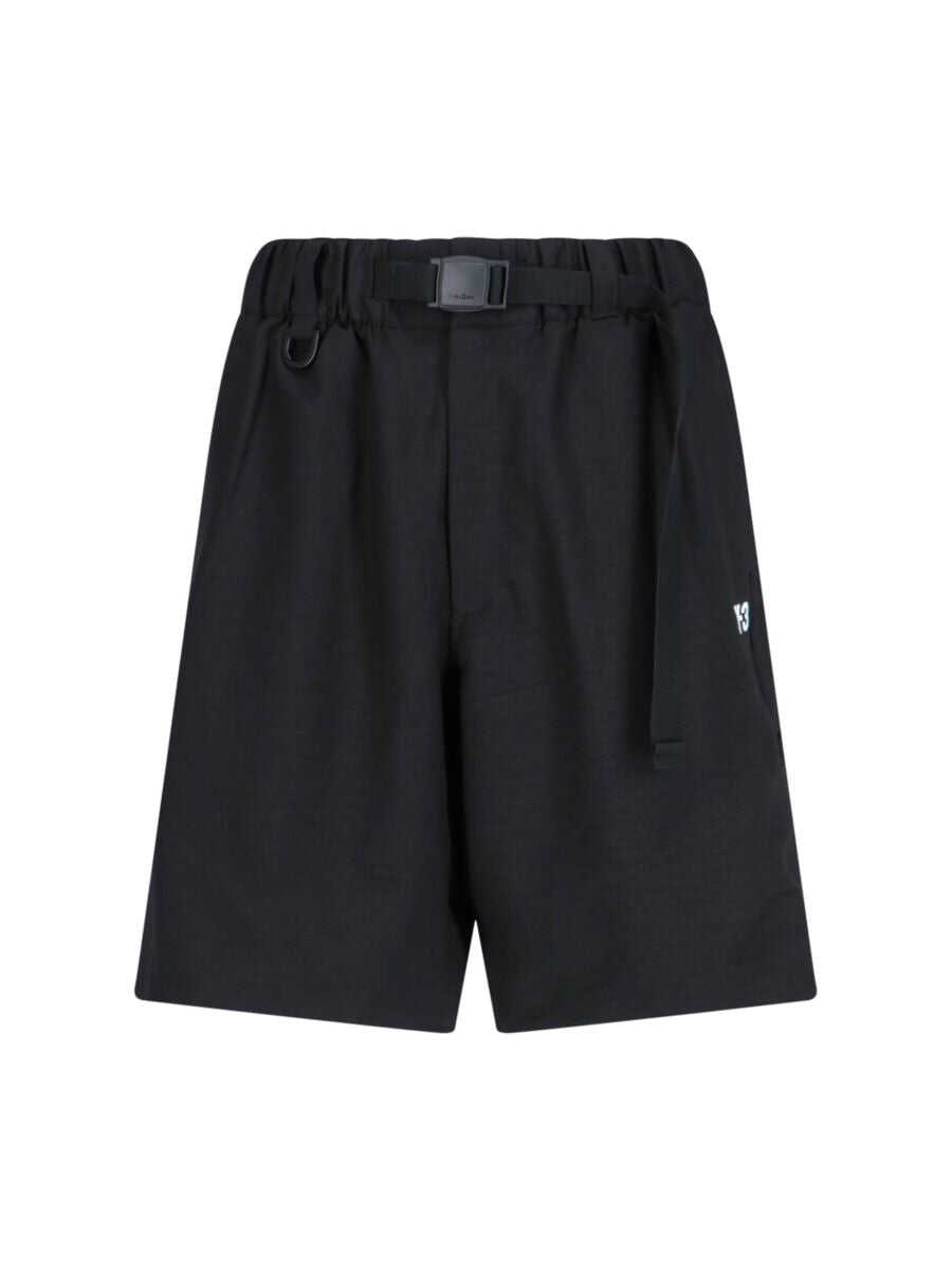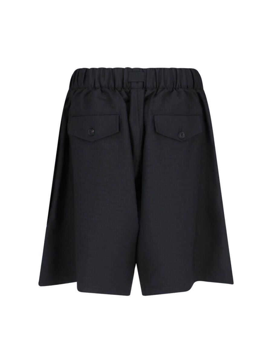 Bermuda shorts in technical fabric, front logo print, side opening with adjustable strip details with buttons, elastic with adjustable belt at the waist, zip and snap button closure, pockets, wide leg