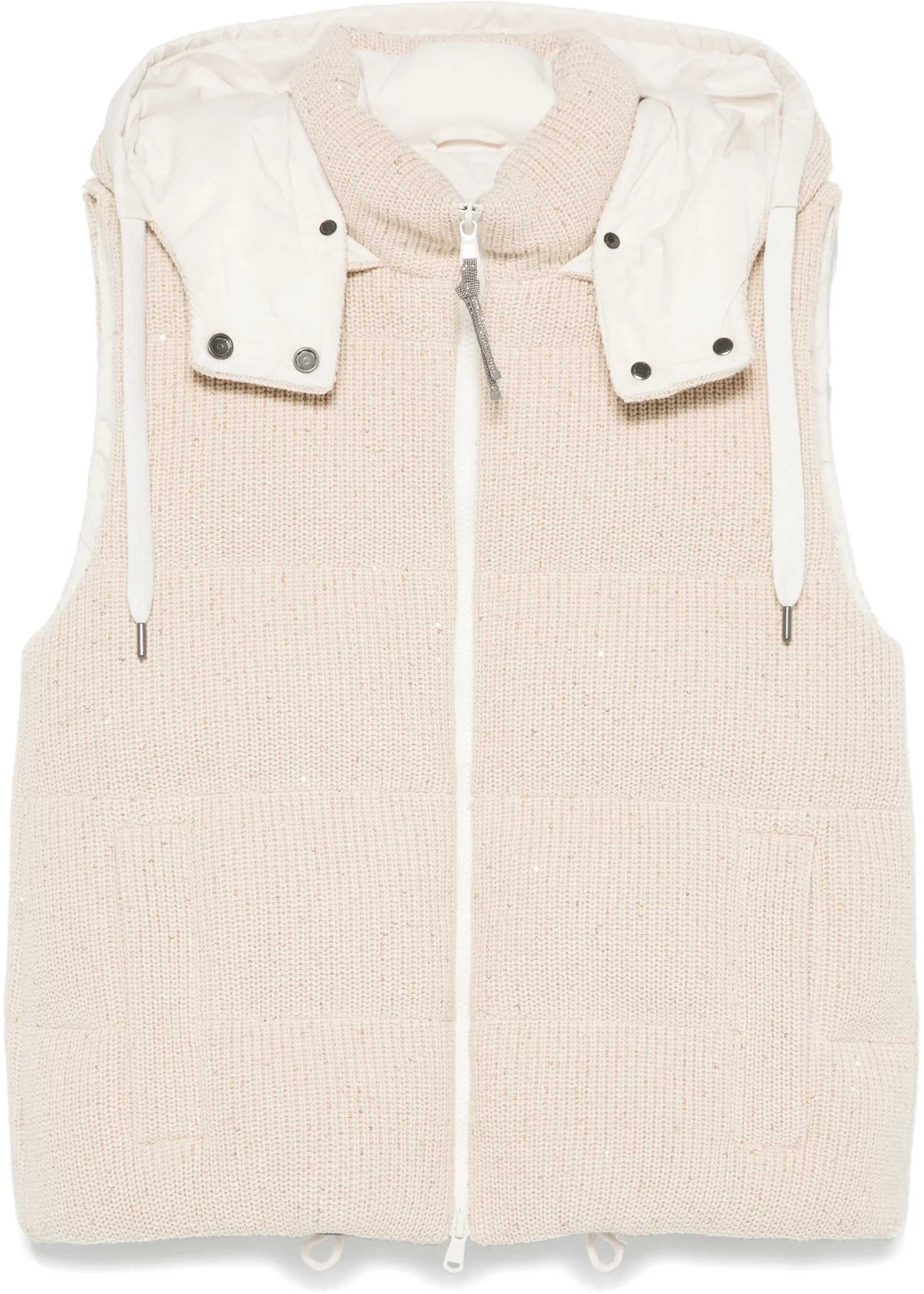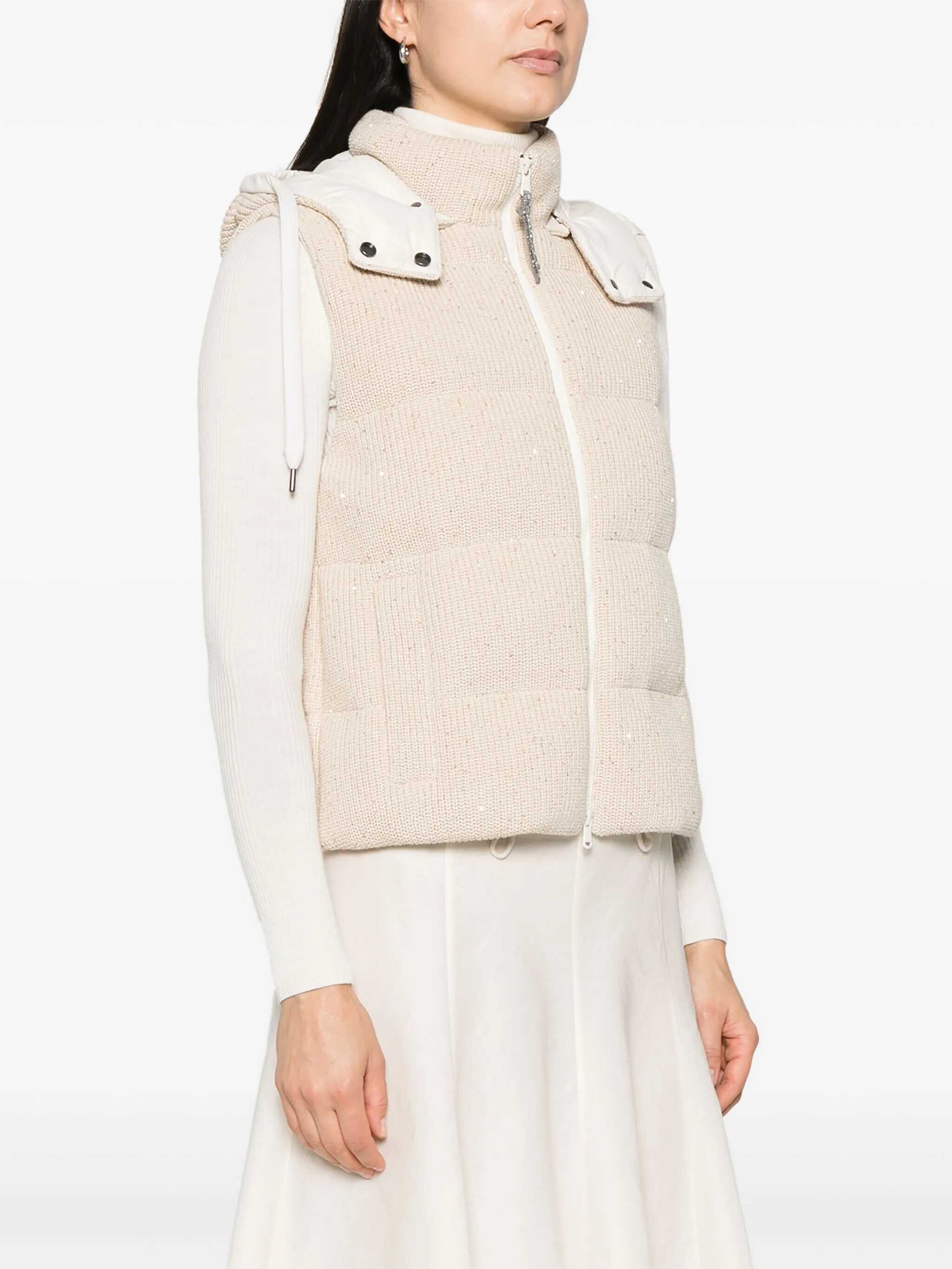 The cotton hooded Down Vest by Brunello Cucinelli is a versatile piece that combines functionality and sophisticated style. The high crew neck and adjustable drawstring hood offer comfort and protection, while the double-slider front zip closure allows you to easily adjust the fit. The two side welt pockets add practicality, maintaining a clean and elegant design. The all-over padded and quilted fabric provides warmth without sacrificing lightness, making this gilet ideal for cooler days. With a regular fit, it is perfect to be worn over a sweater or a shirt, creating a casual-chic look suitable for both day and leisure time.