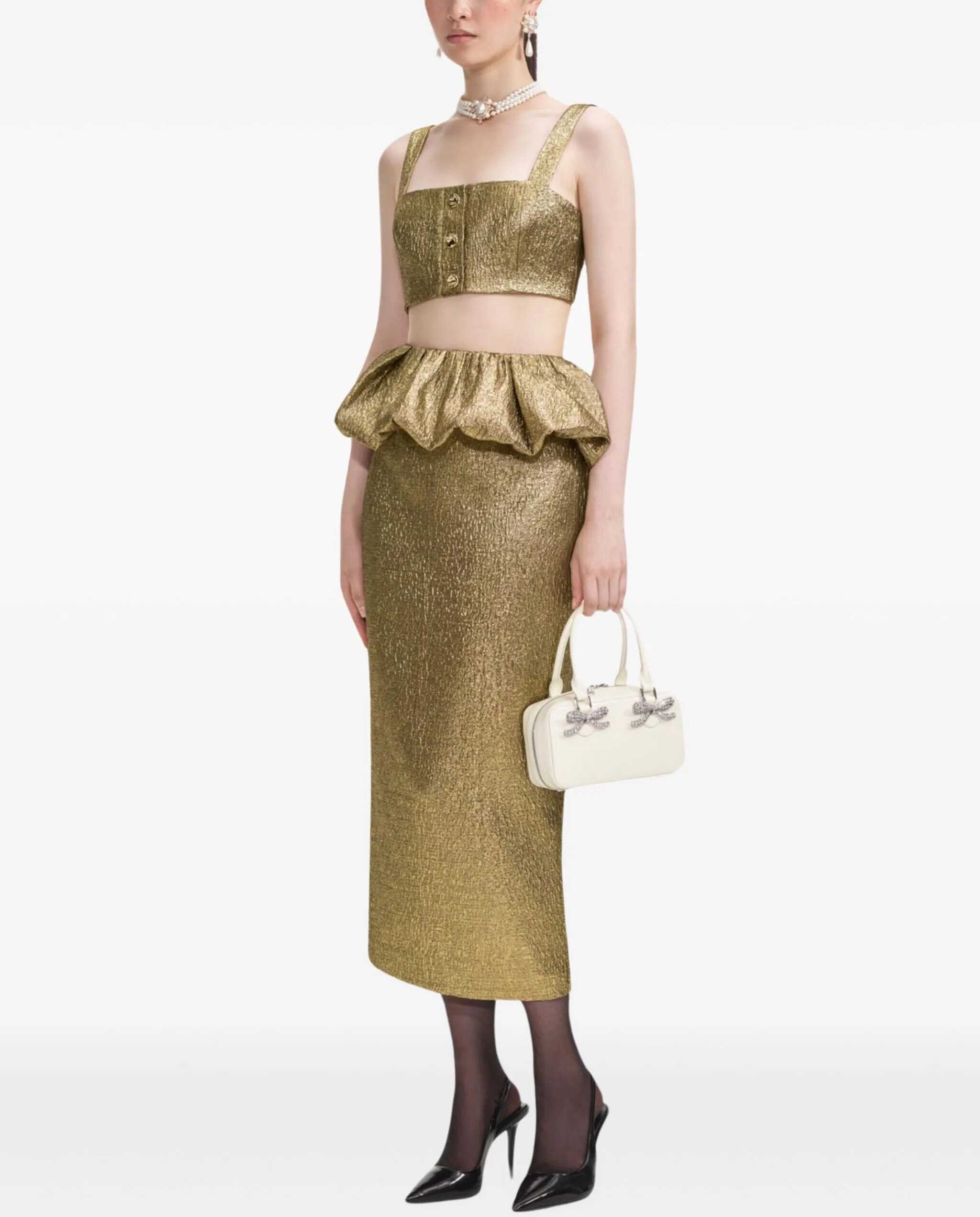 - 80% POLYESTER 18% METAL 2% ELASTANE - MADE IN China- THE MODEL IS 180 CM TALL AND WEARS SIZE 6 UK